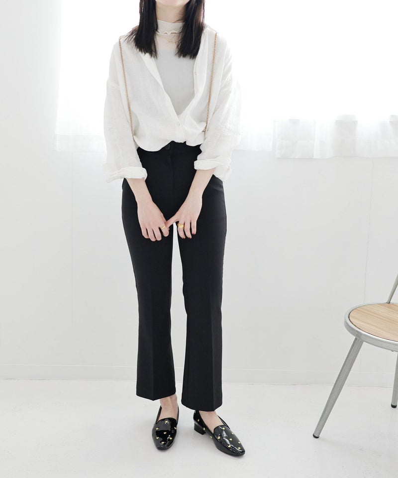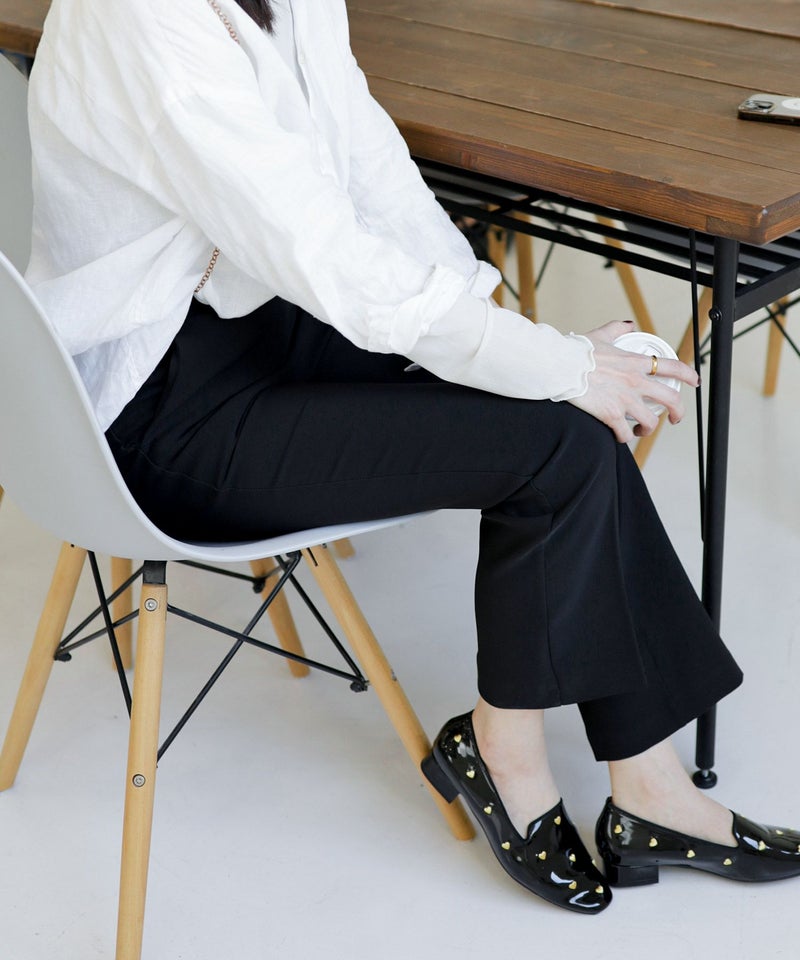 接地面の広いローヒールは、安定感がありさり気なくスタイルアップしてくれます。