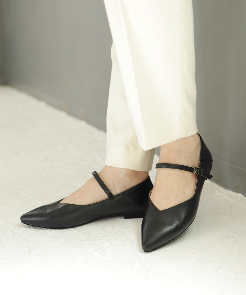 シャープなラインが足をすっきりときれいに見せてくれて、フラットでも美脚効果たっぷり。