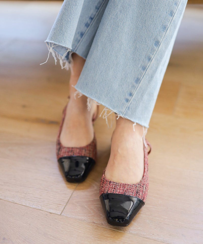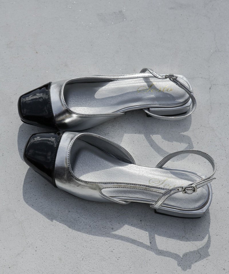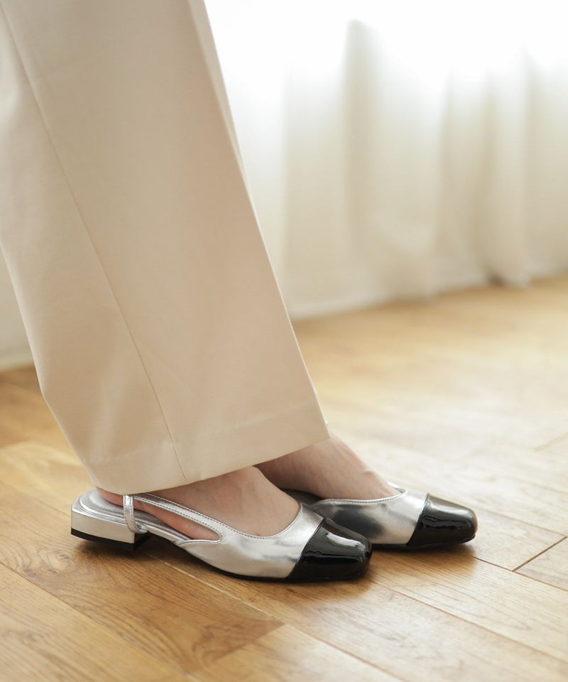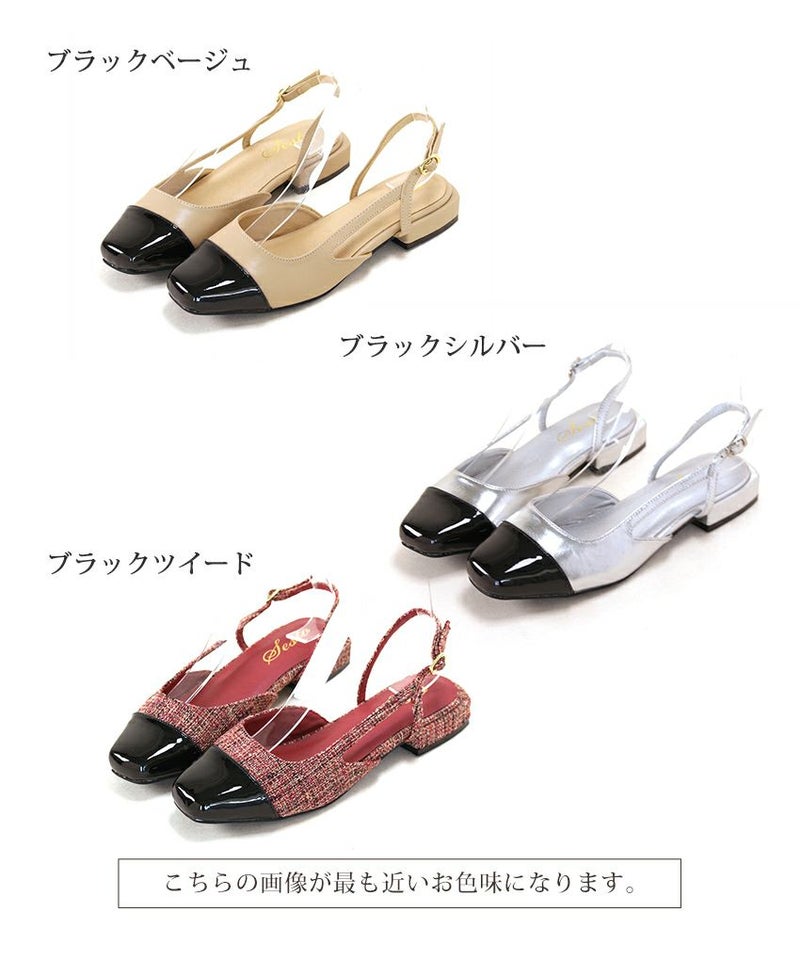 4. バイカラースクエアトゥローヒールスリングバックパンプス▲返品交換不可