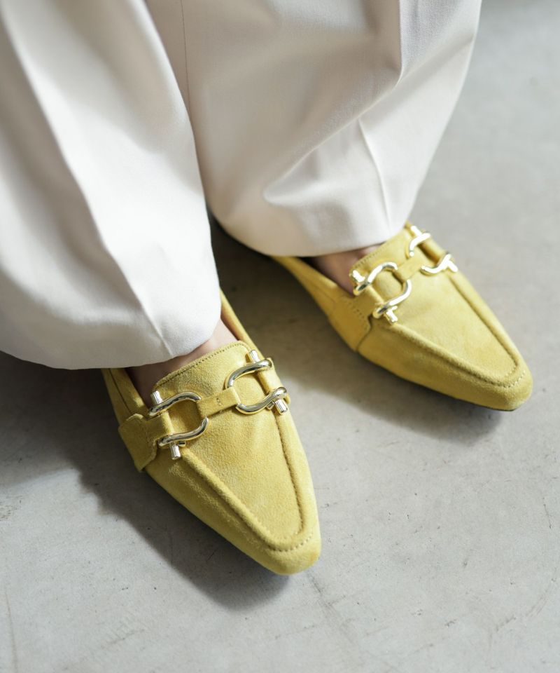 大ぶりのビットモチーフがコーディネートのアクセントに映える贅沢な一足。