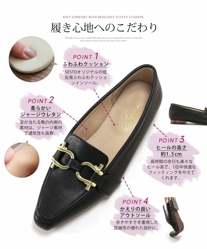 長時間の歩行も楽々な約1.5cmのヒール高で、1日中快適なフィッティングを叶えてくれます。