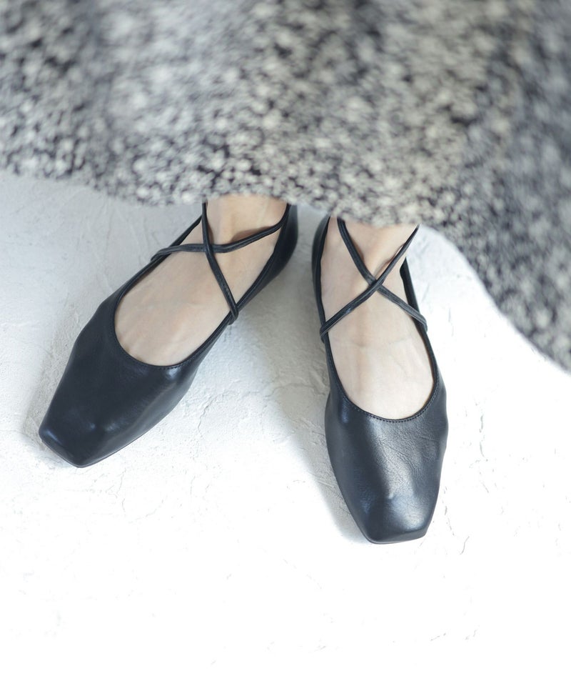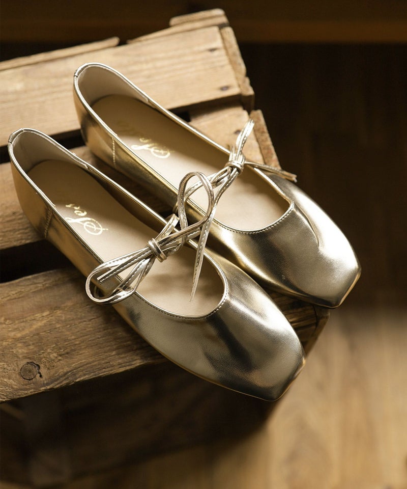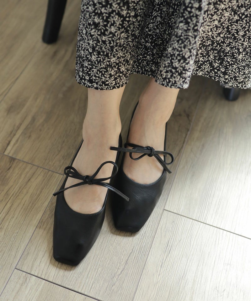 スクエアトゥレースアップバレエシューズ