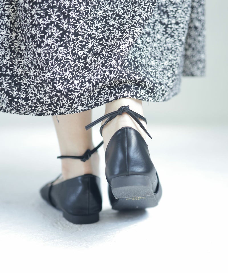 レースアップで女性らしさを添えた軽やかなフラットデザインは毎日のお洒落を大人っぽく上品に仕上げてくれます。