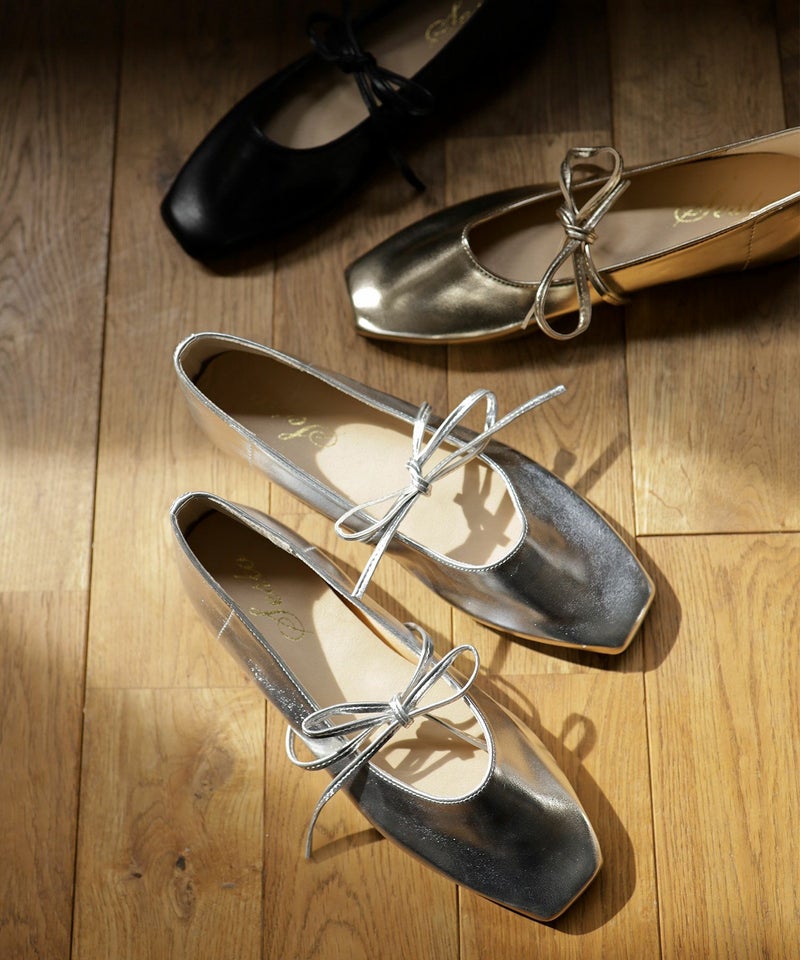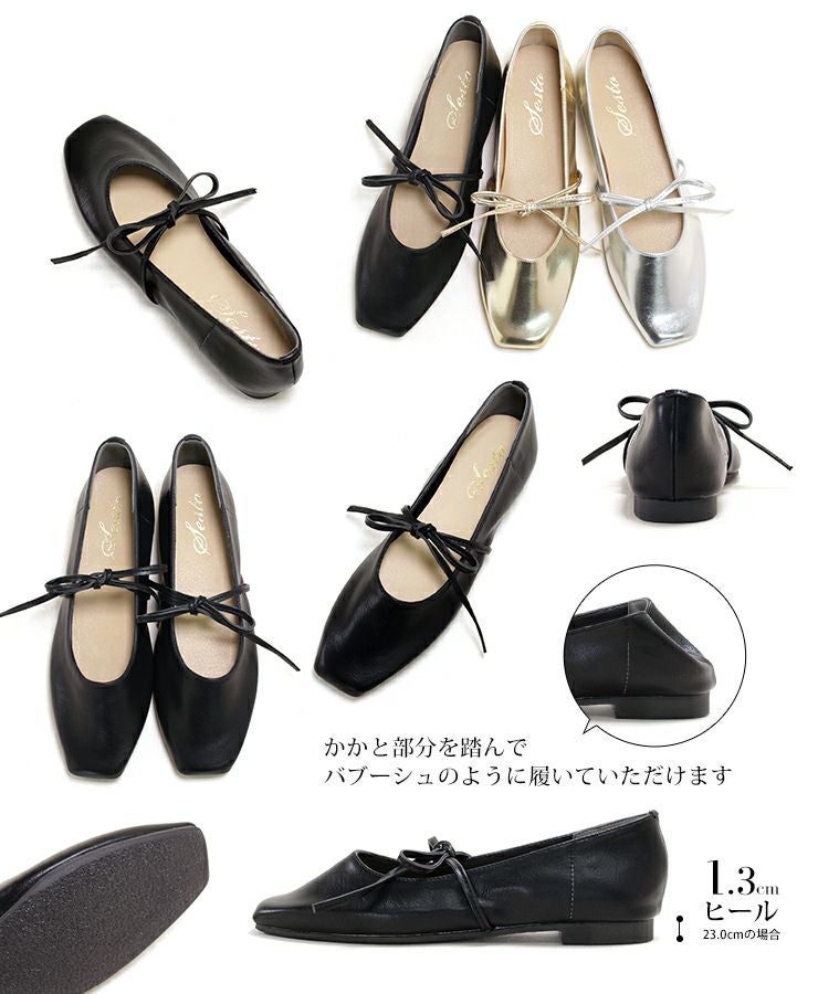 4. スクエアトゥレースアップバレエシューズ