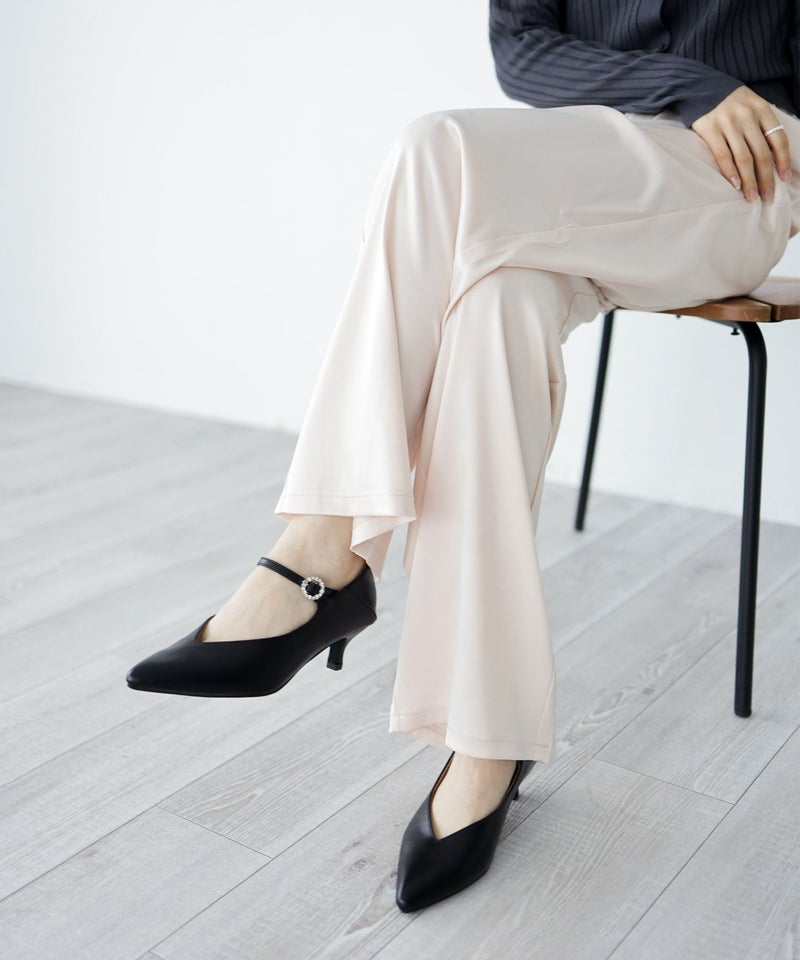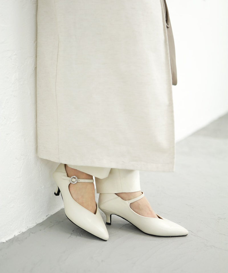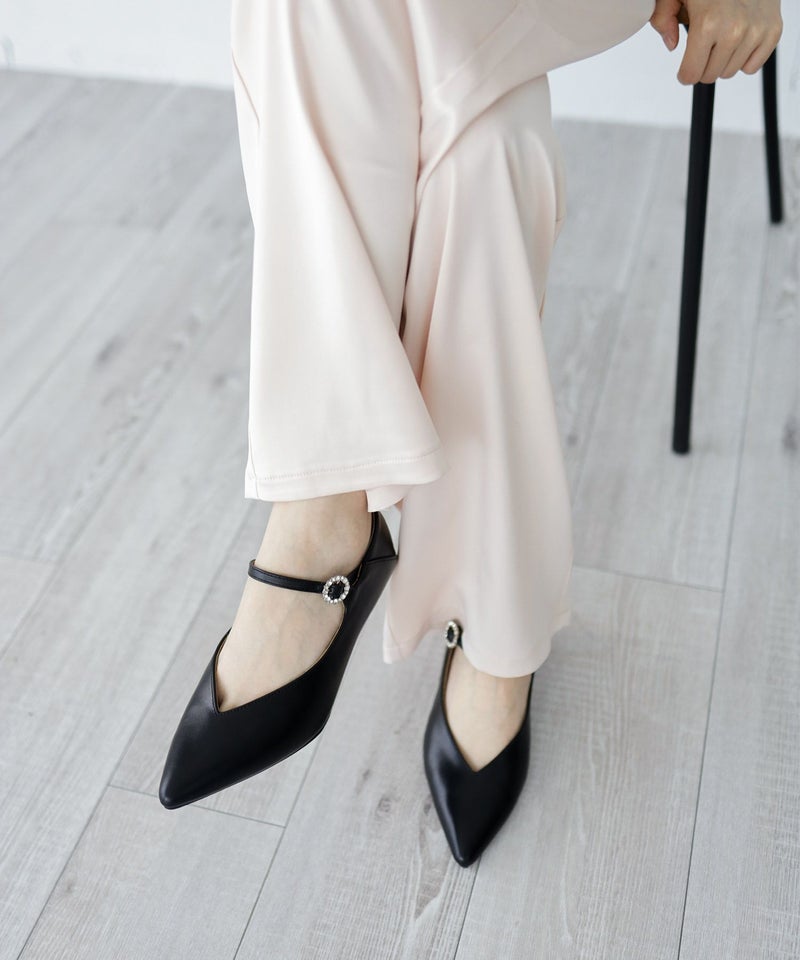 4. かかとが踏める2Way!ビジューバックルポインテッドトゥキトゥンヒールパンプス 一部4月中旬入荷予定