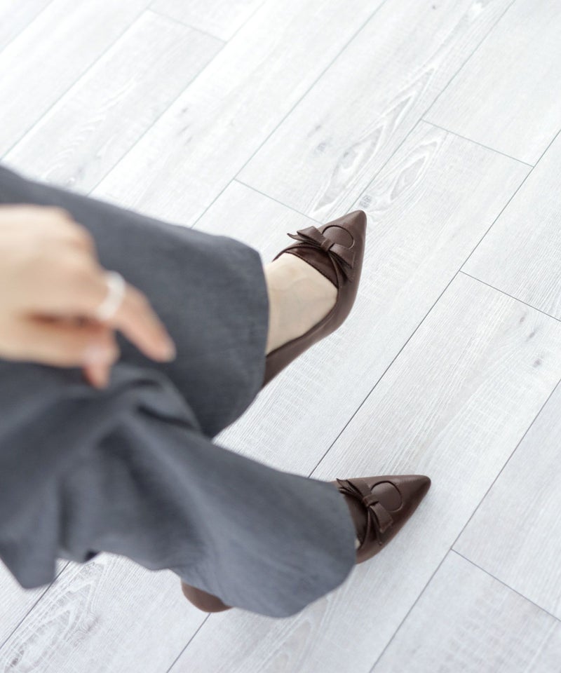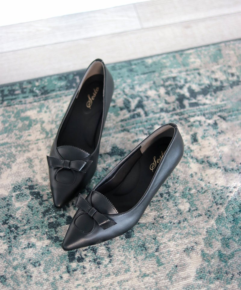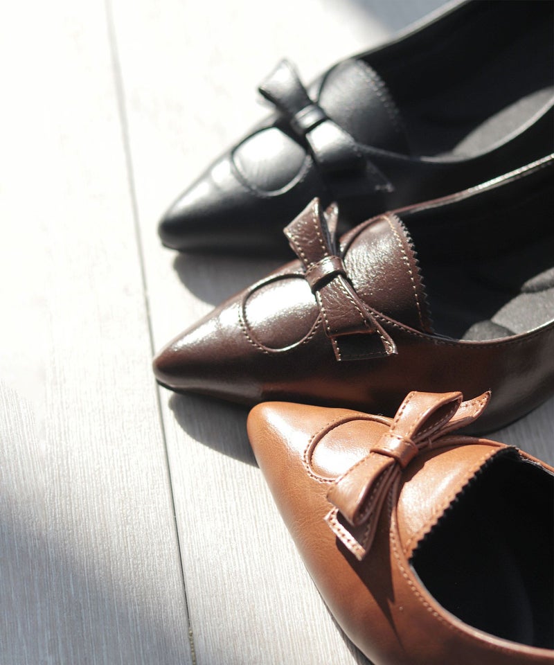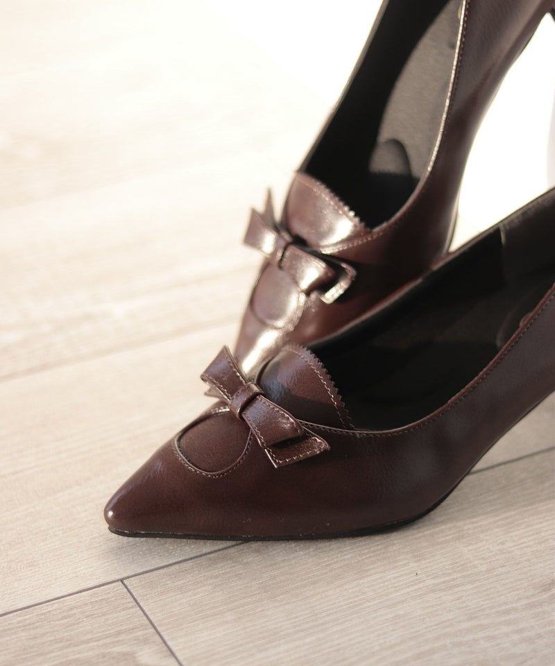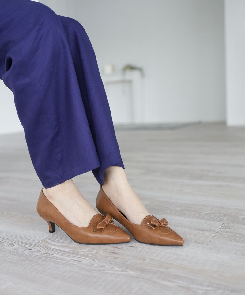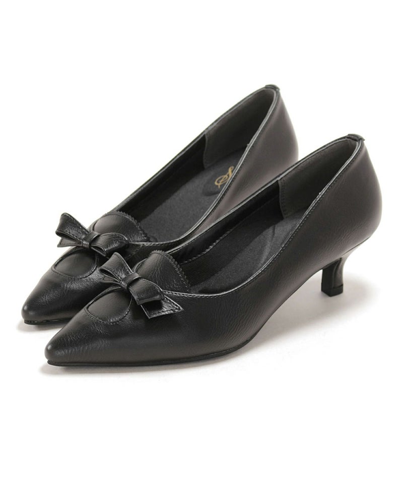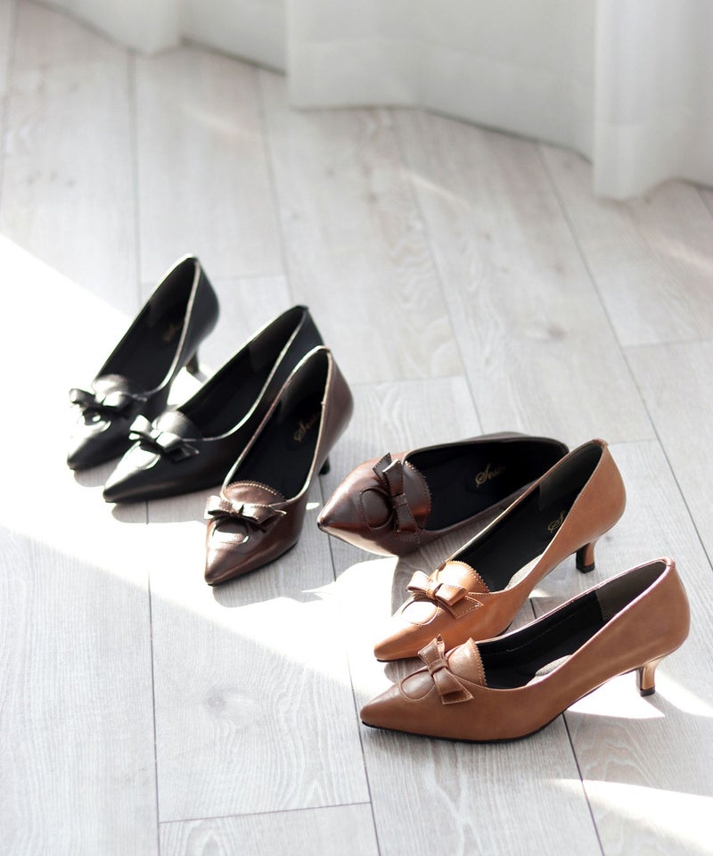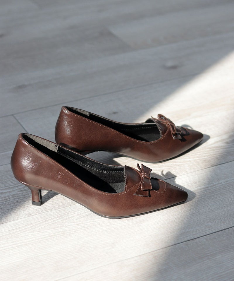 4. リボン付きキトゥンヒールクラシカルパンプス