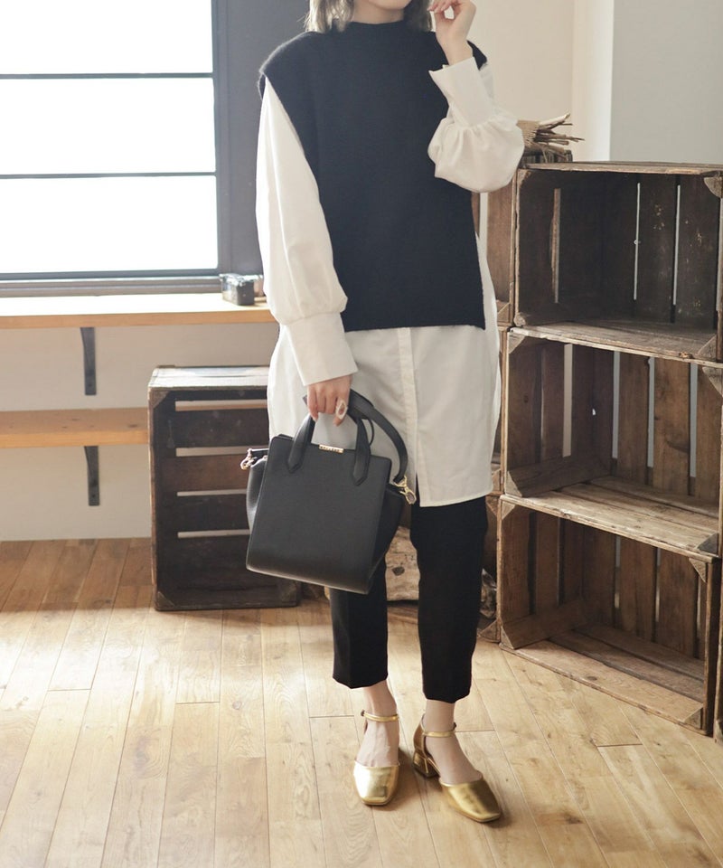 品のよいスクエアトゥに程よい深さの履き口が落ち着いた雰囲気を与え、より大人顔な印象に。