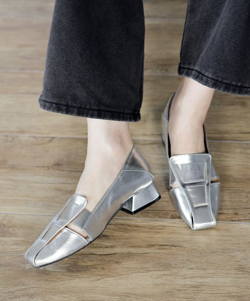 スクエアトゥで足先まで快適に履けて、モードな印象に。