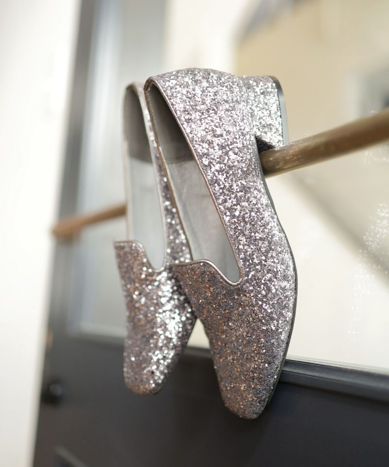 今年トレンドのメタリックカラーで足元から華やかさをまとえるシルバーグリッター。