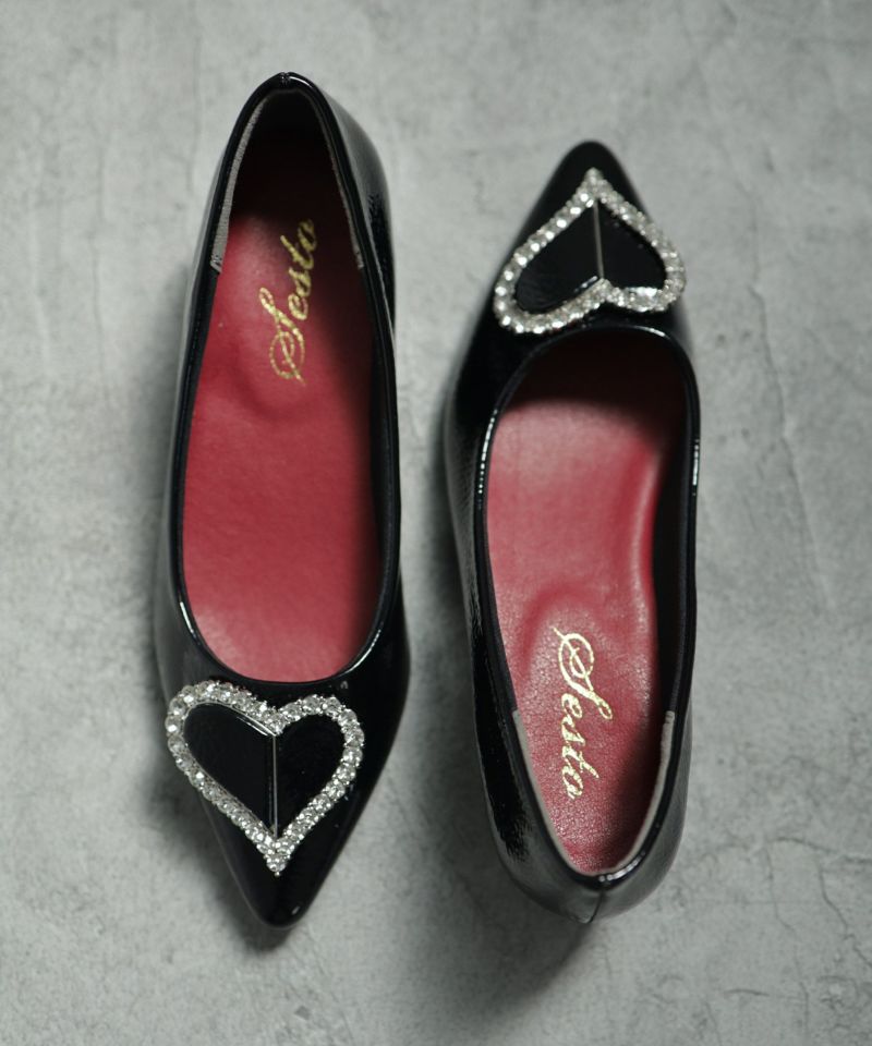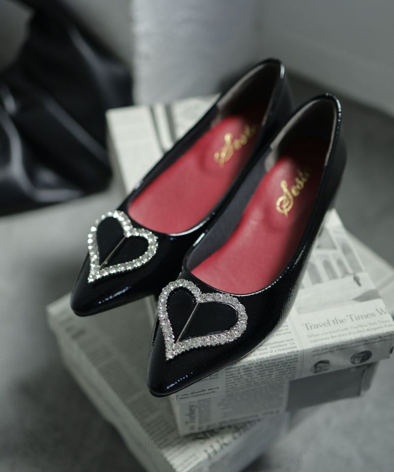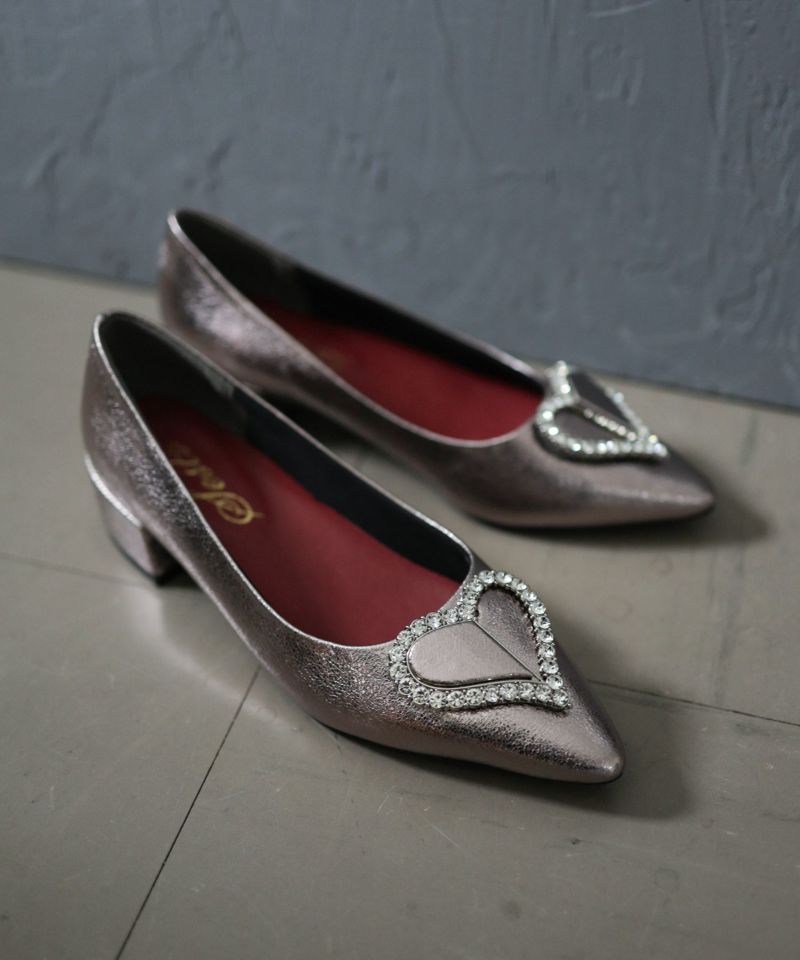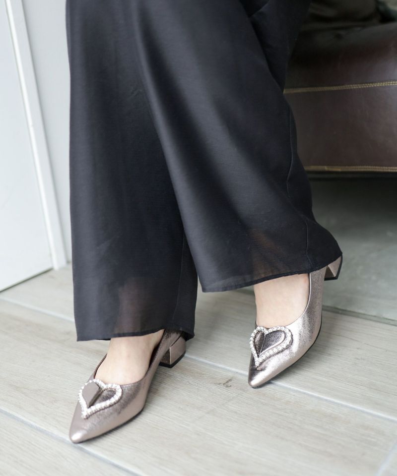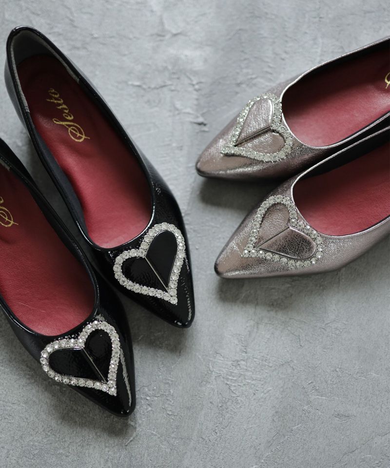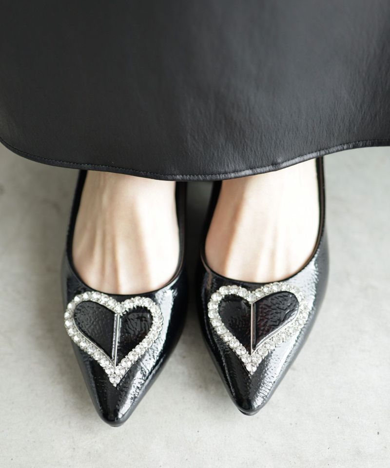 商品説明クラシカルムードたっぷりのパンプスに、思わず目を引くハートのビジューがエレガント。