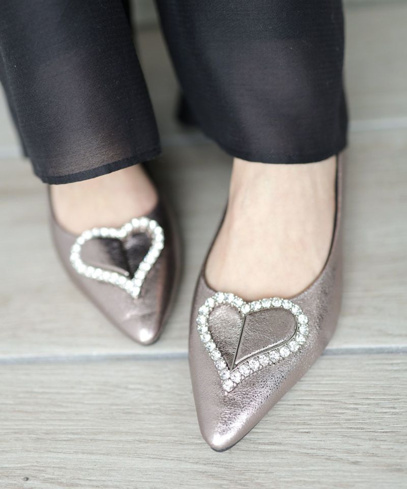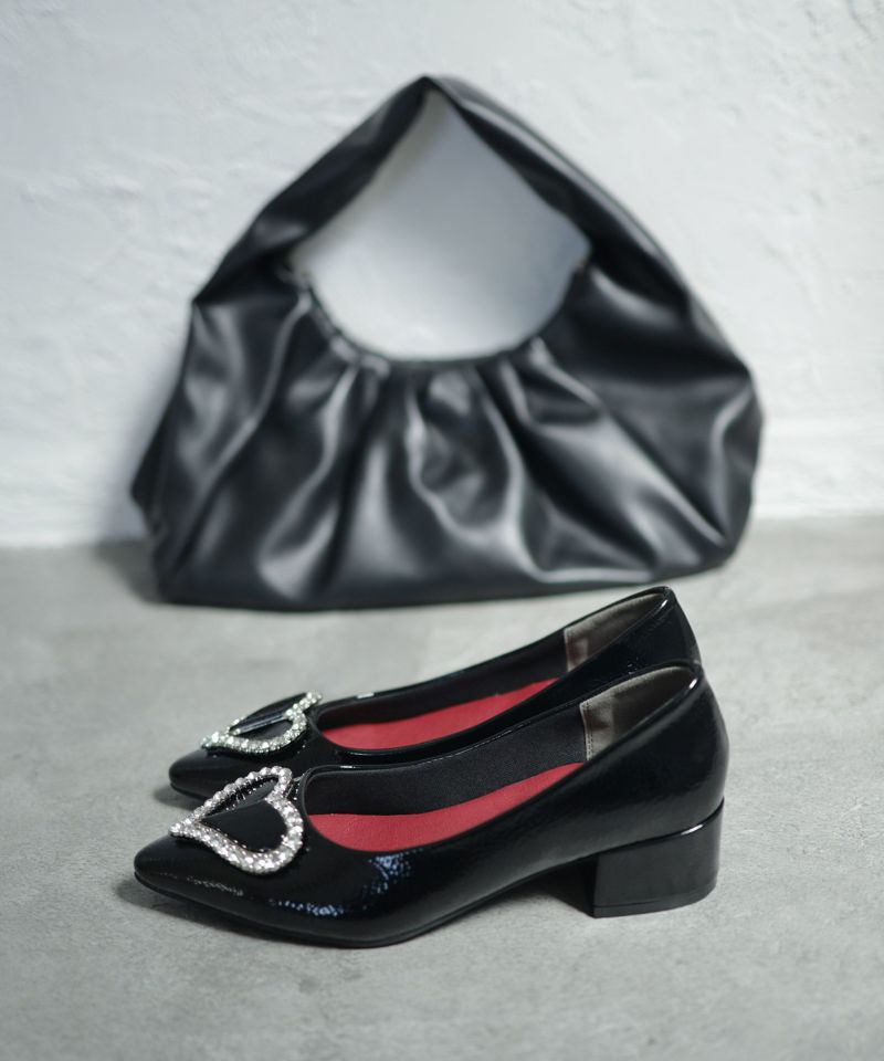 4. ハートモチーフローヒールポインテッドトゥパンプス