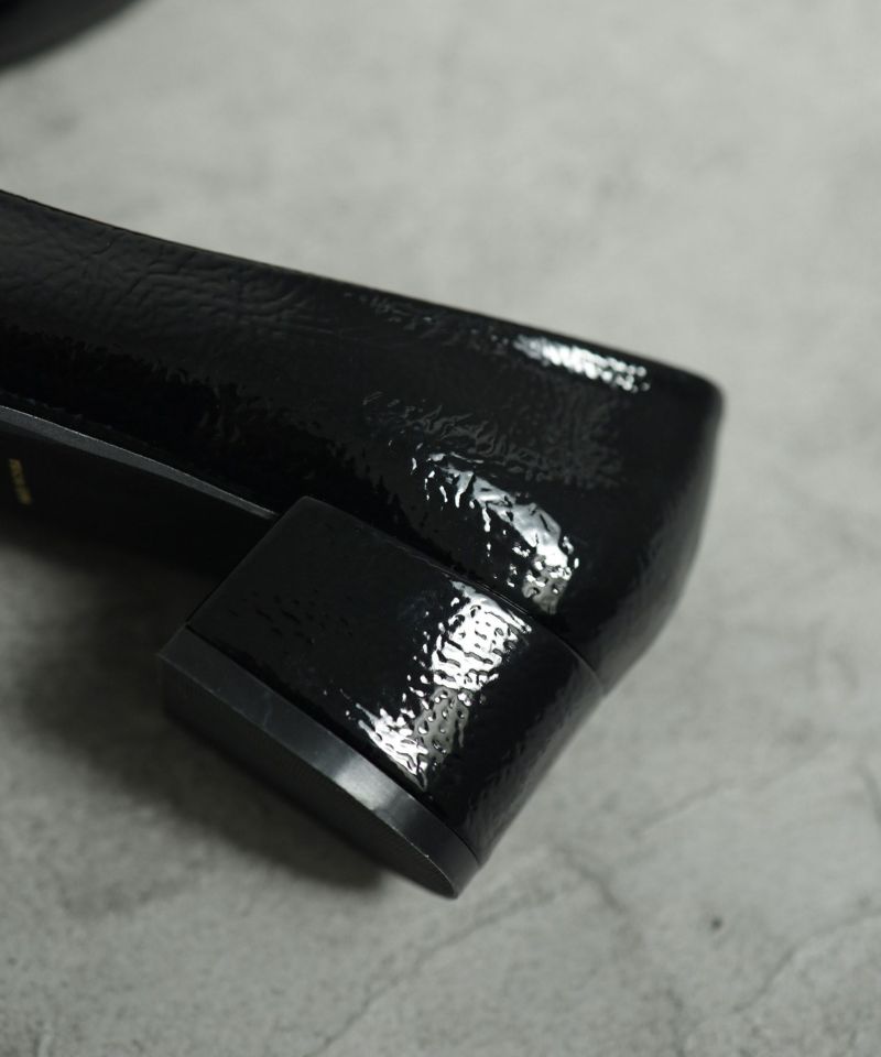 パンプス本体はシャープで洗練されたフォルムと、アッパーのシボ感やインソールの深い色味でクラシカルな雰囲気に仕上げました。