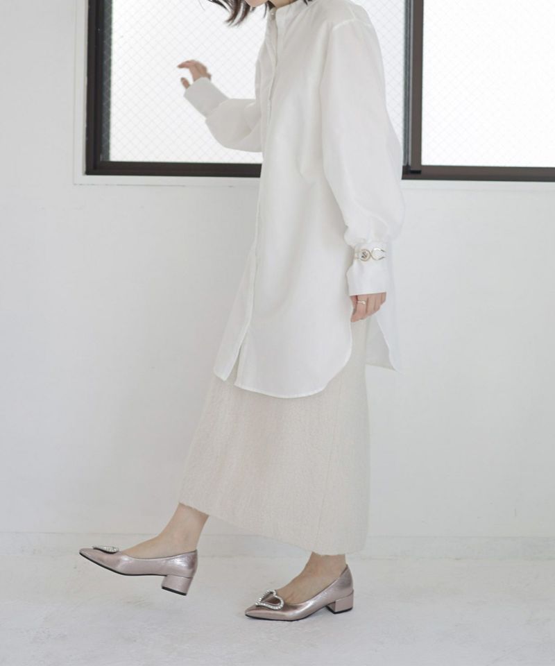 ポインテッドトゥですっきりとしたフォルムに仕上げたのも、足が綺麗に見えるポイント。