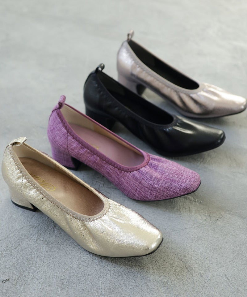 履き口ゴムの柔らか素材スクエアトゥパンプス▲返品交換不可