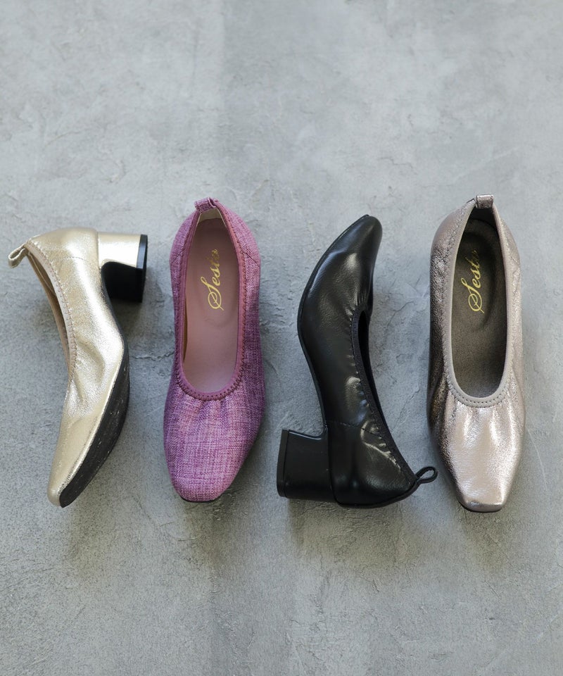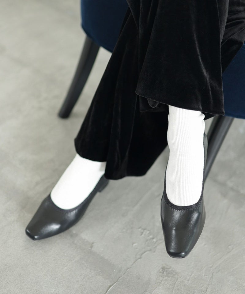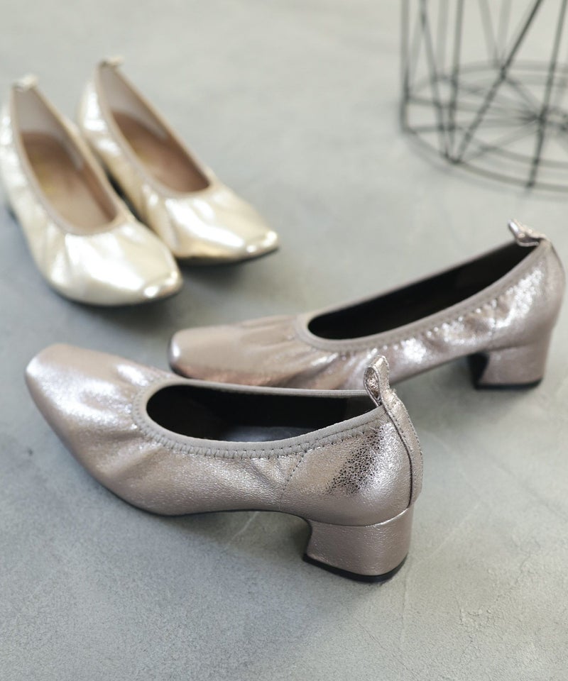 4. 履き口ゴムの柔らか素材スクエアトゥパンプス▲返品交換不可