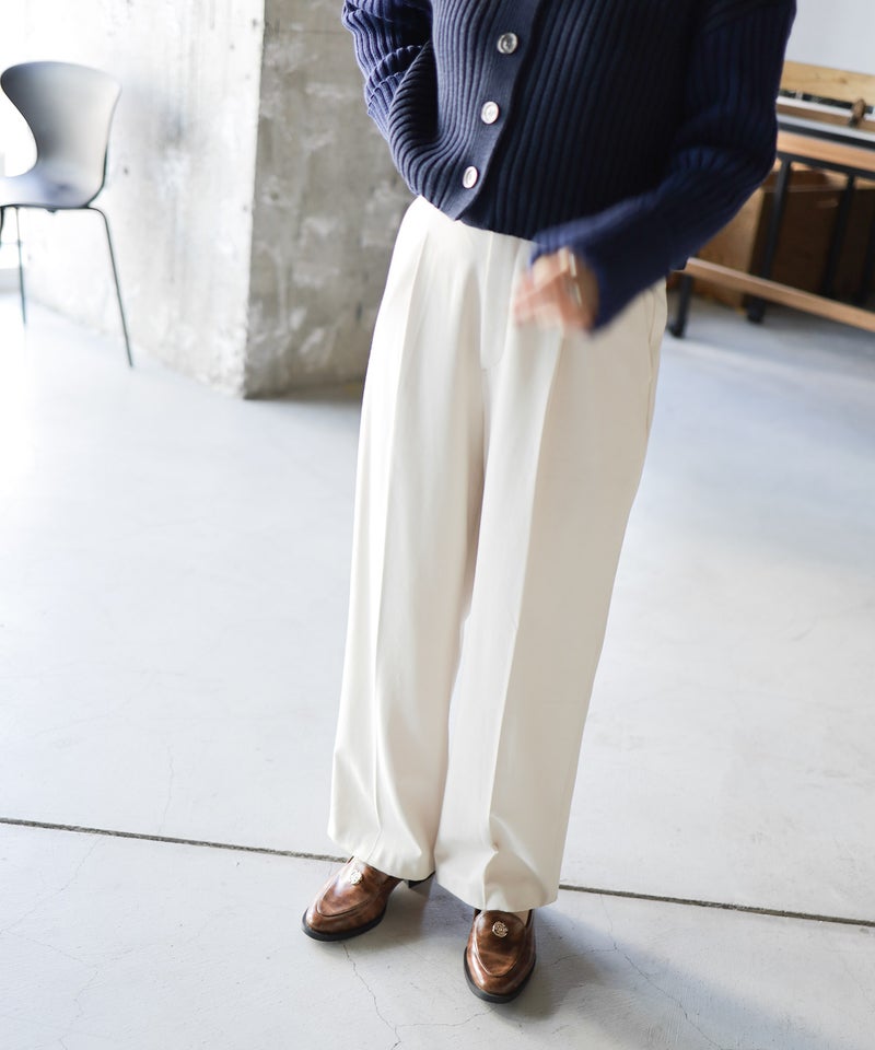 オケージョンやオフィスシーンにもぴったりで、ソックスコーデも楽しめます。