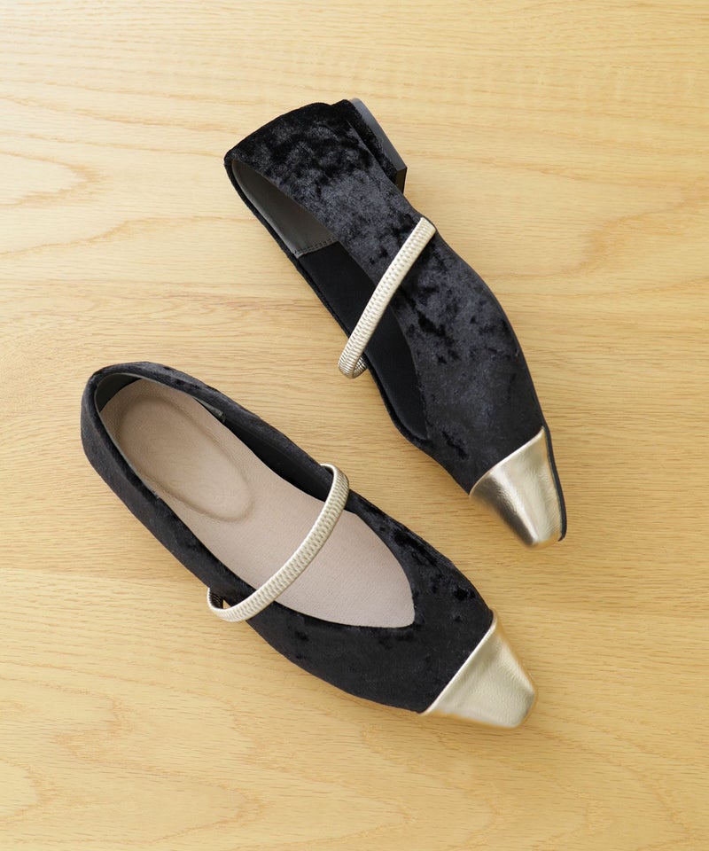 ポインテッドトゥが苦手な幅広・外反母趾の方でも履きやすい形です。