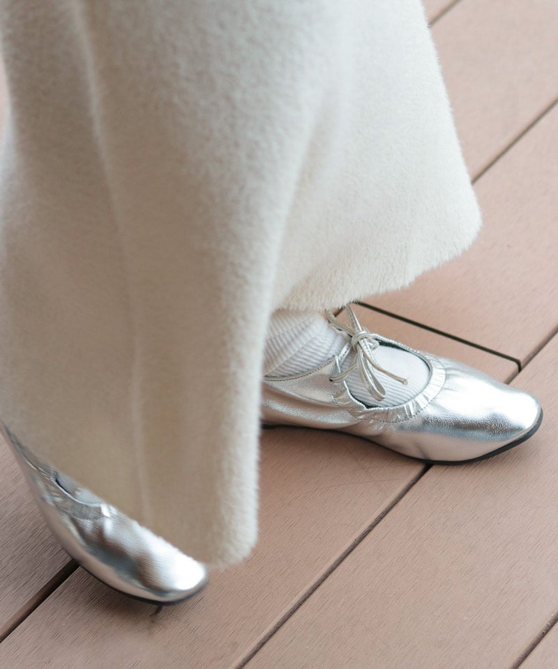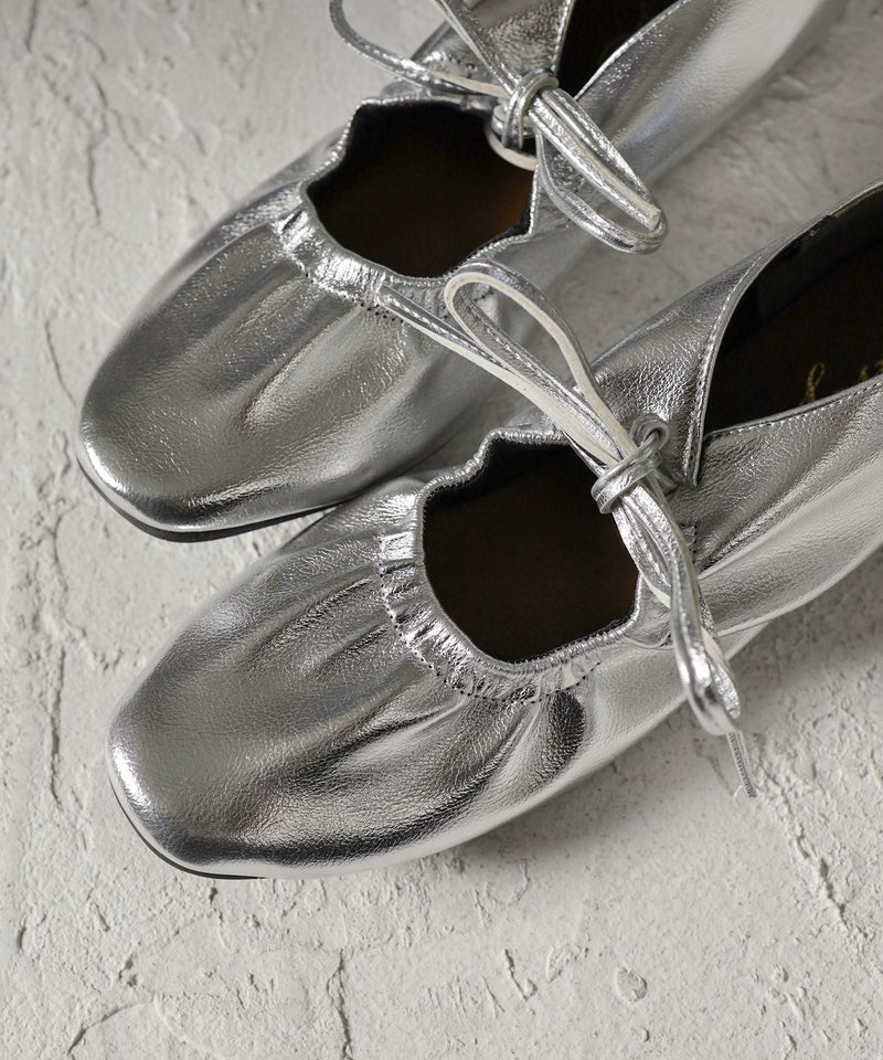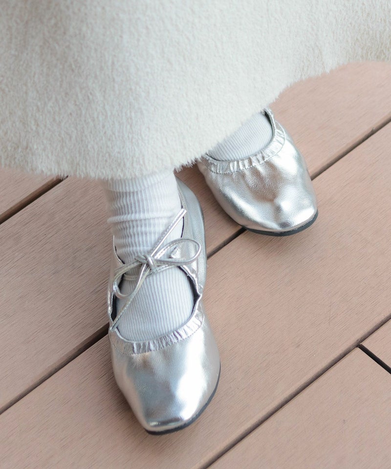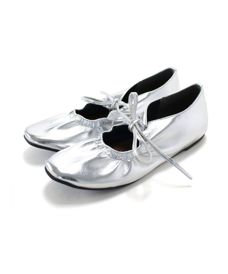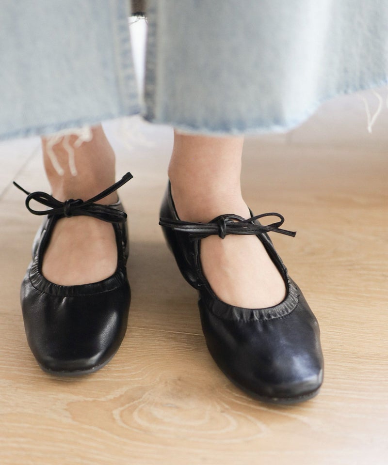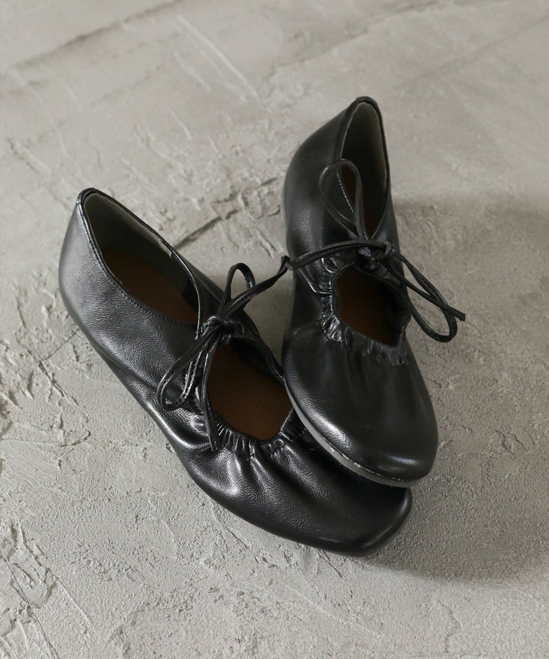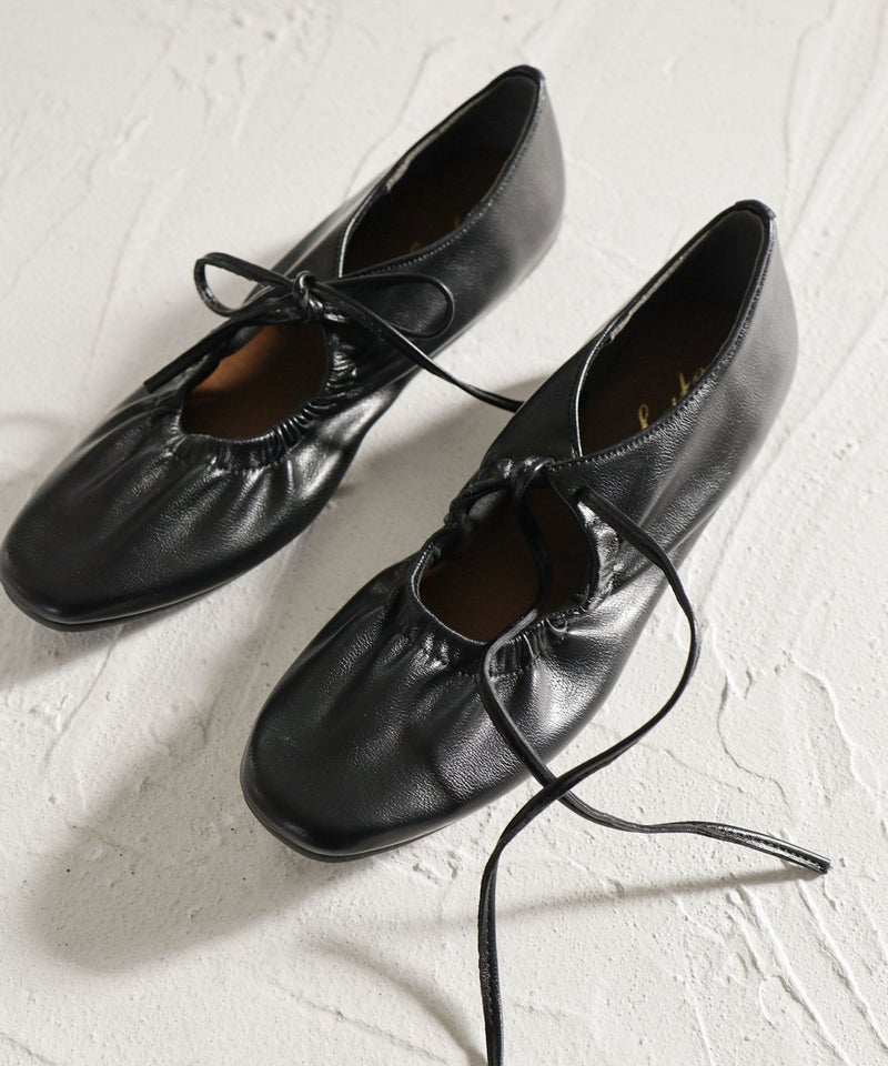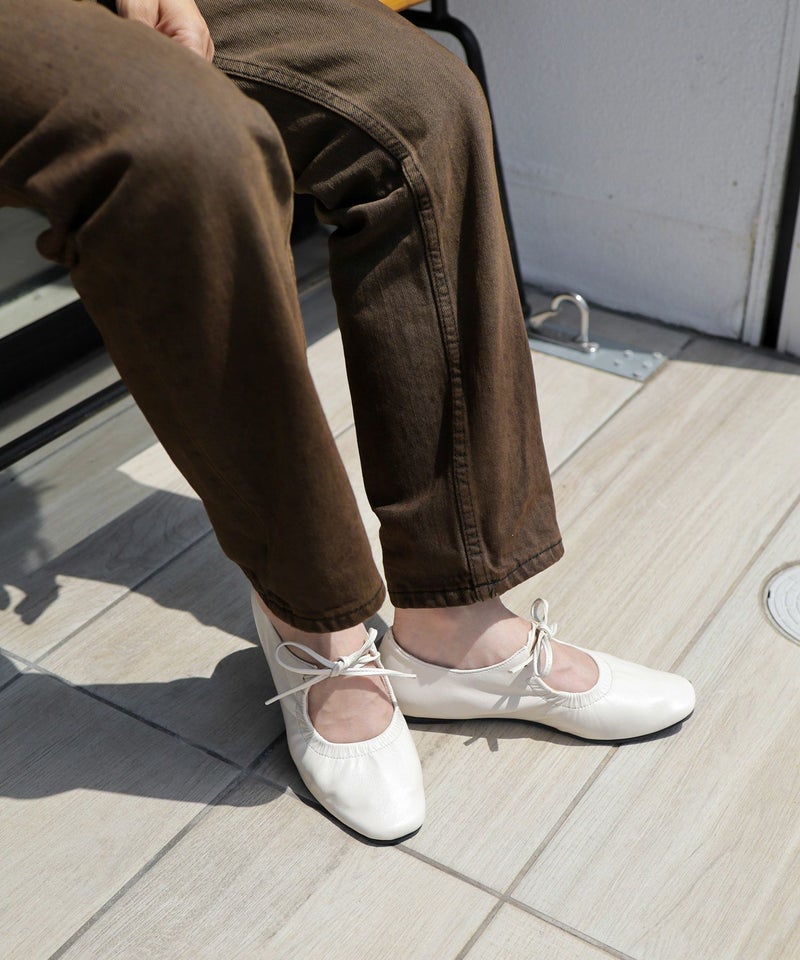 4. スムース素材レースアップリボンバレエシューズ▲返品不可