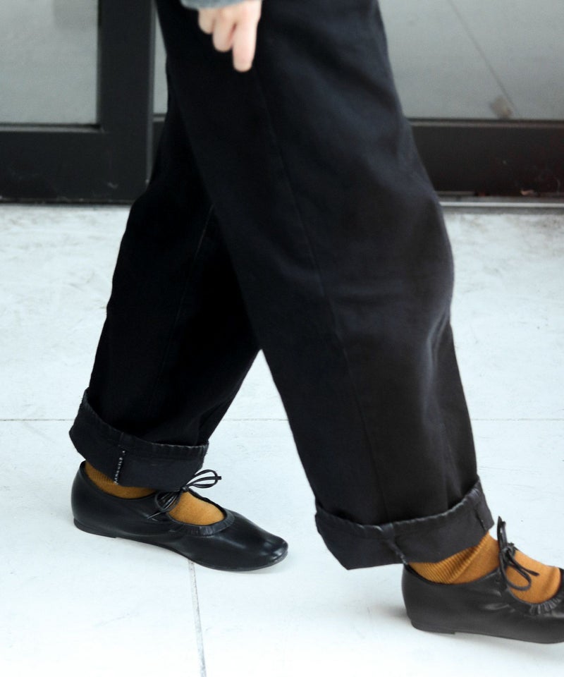 レースアップはリボン結び以外にも、紐の両端をそれぞれ折り重ねて通し穴の前でひと結びにし、メリージェーンのように履くことも!