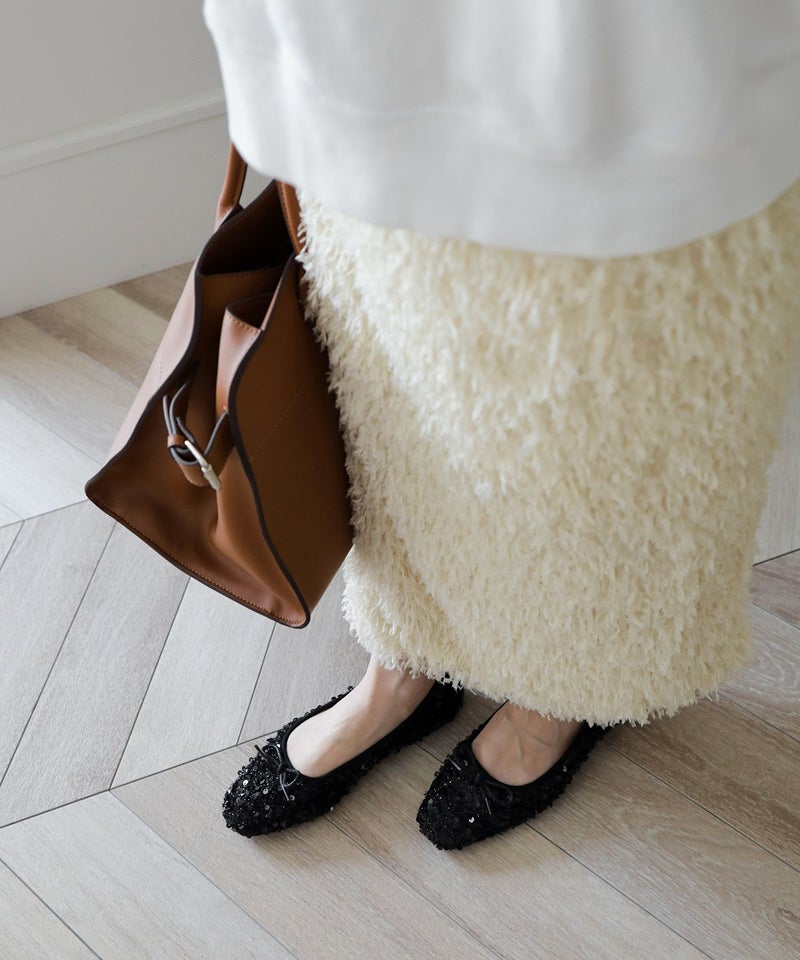 素材で遊び心を添えたバレエシューズ。