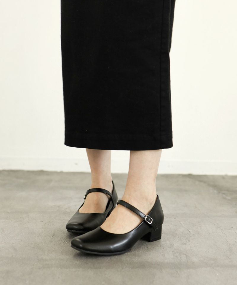 4. 選べる2デザイン!ゆったり幅広ふわふわクッションインソールスクエアトゥローヒールパンプス 一部11月上旬入荷予定