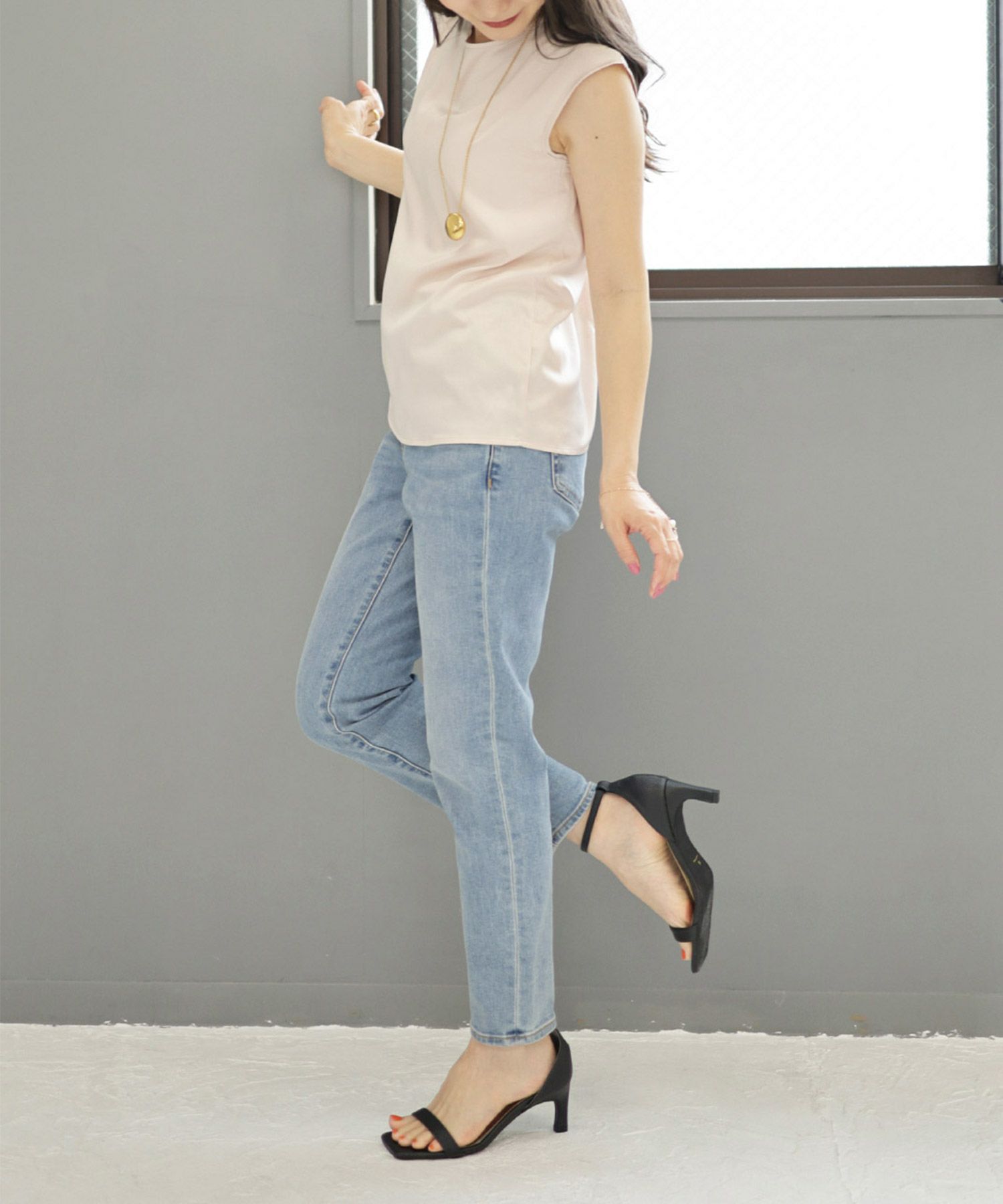 ストンっと真っすぐに落ちるストレートヒールは美脚効果抜群。
