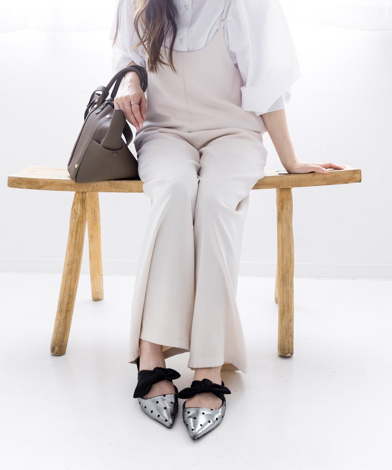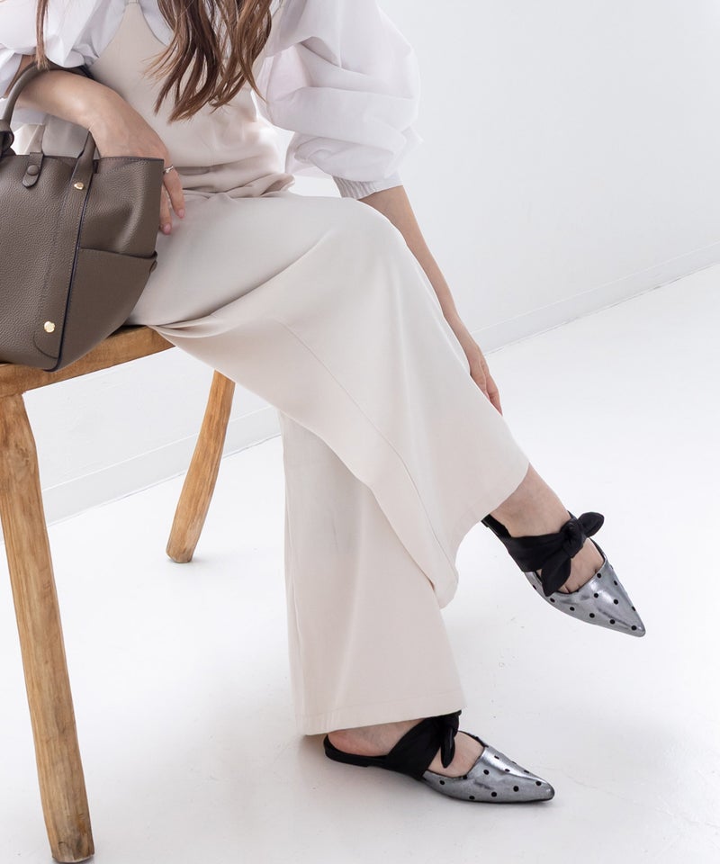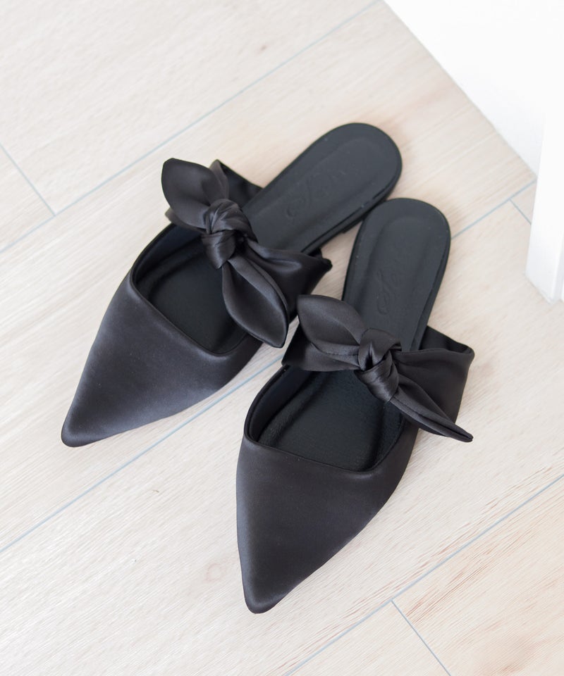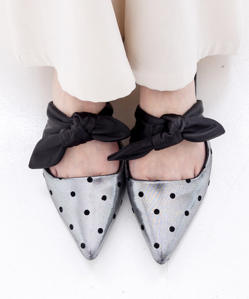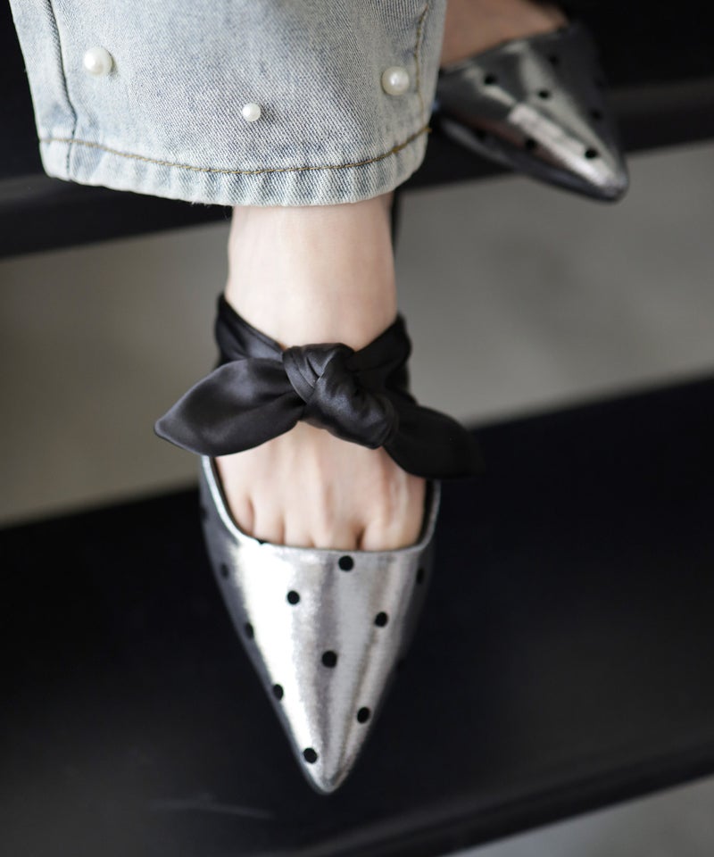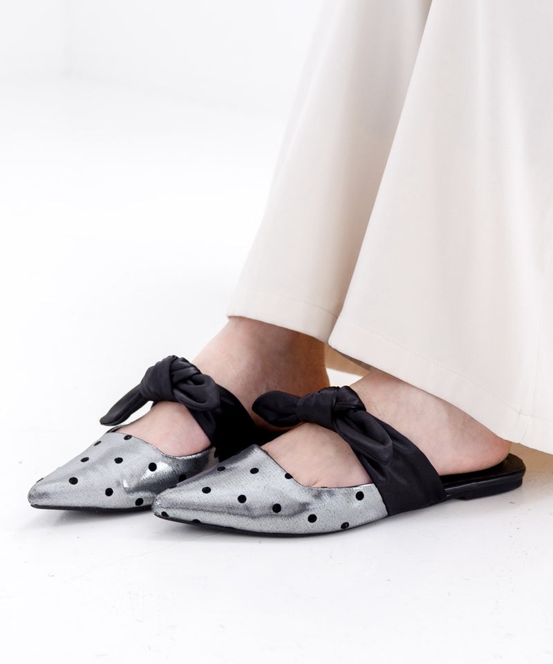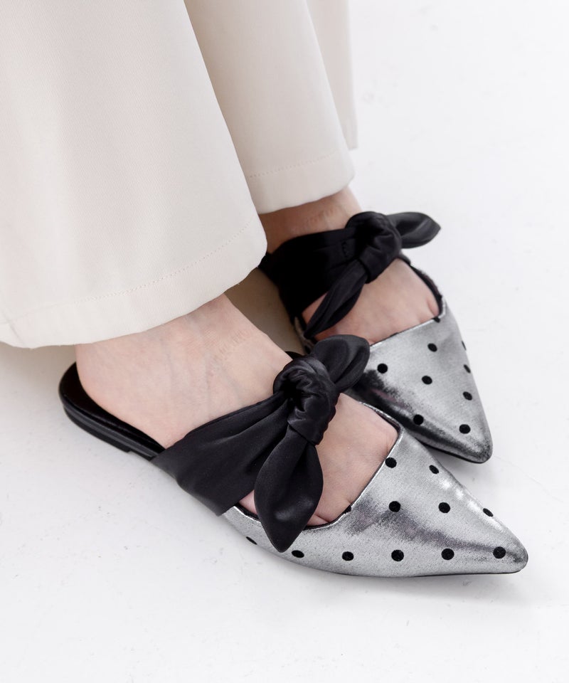 ポインテッドトゥフラットリボンミュール▲返品不可