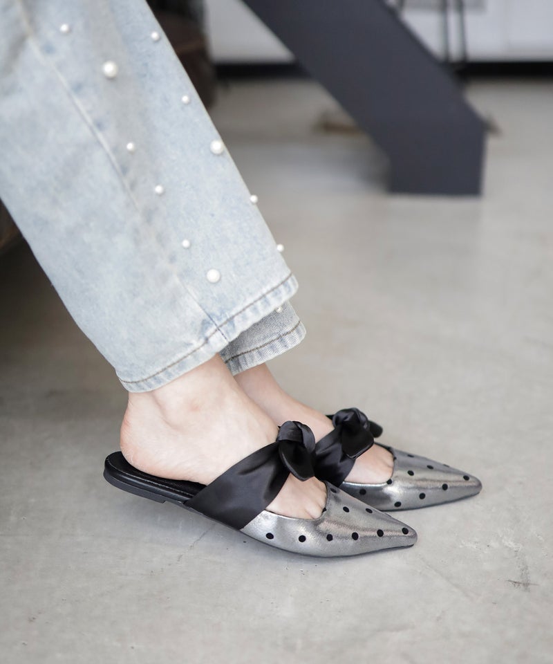 4. ポインテッドトゥフラットリボンミュール▲返品不可