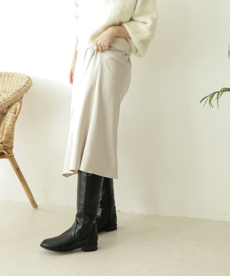 すとんと真っすぐに落ちるシルエットは足のラインを拾わないのでロングブーツを履くとふくらはぎに余裕がなくなりがちな方や足がむくんでくる夕方でもすっきり履いて頂けます。