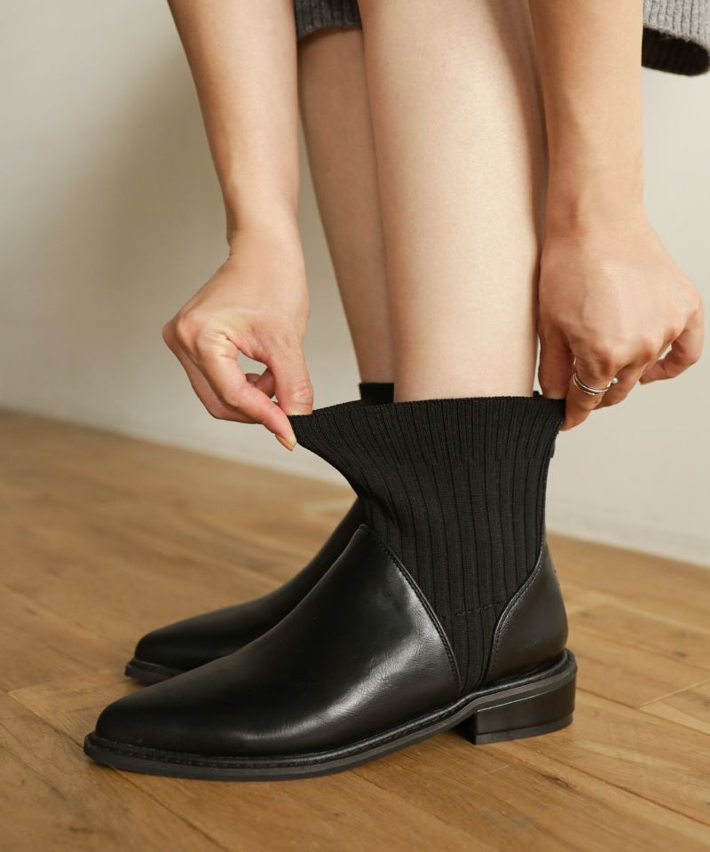 4. ニットコンビローヒールショートブーツ▲返品不可