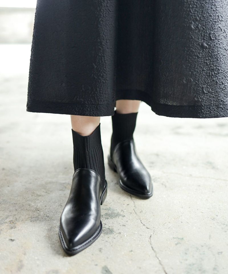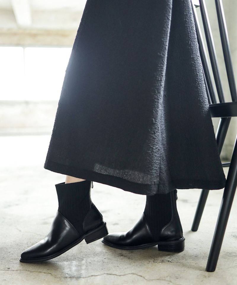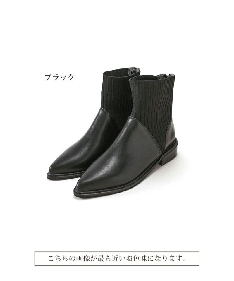異素材を組み合わせたドッキングデザインが楽しい、ニットコンビショートブーツ。