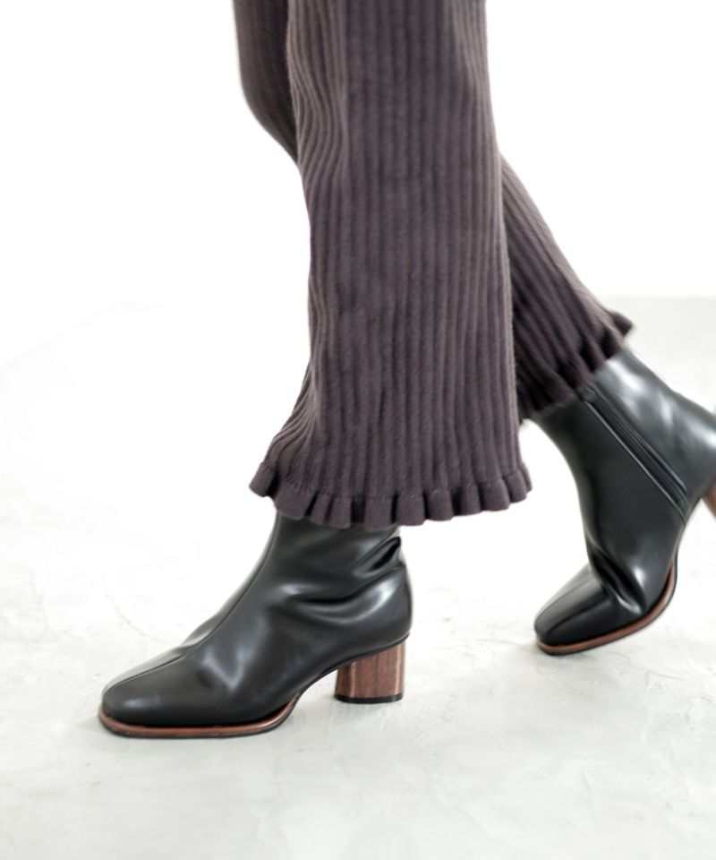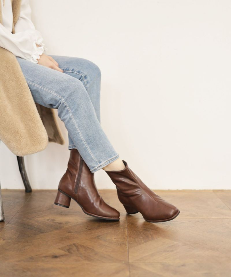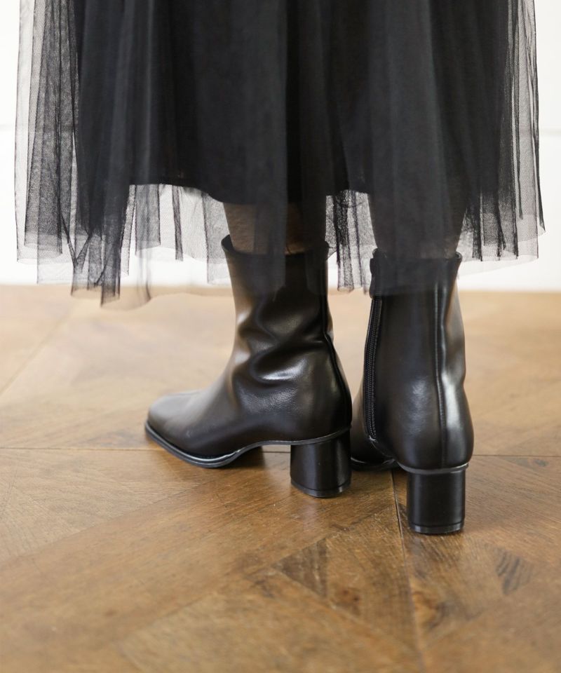 こだわりのピースデザインが程よくモード感を添えるスクエアトゥショートブーツ。