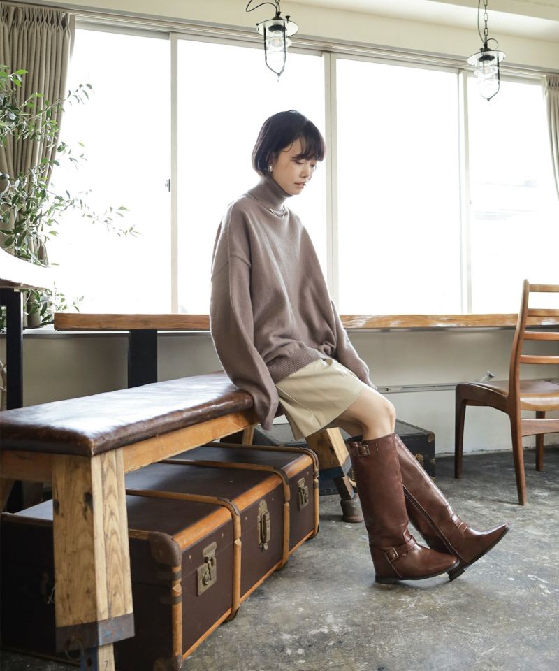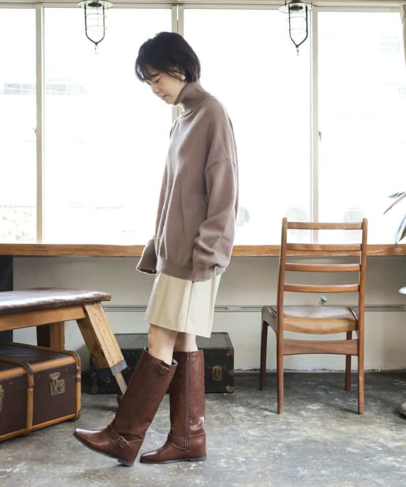 ストンとした筒型のシルエットは脚のラインを拾いにくく、脚をまっすぐにみせてくれる効果や、どんな身長の方が履いても似合うロングブーツのシルエットに仕上げています。