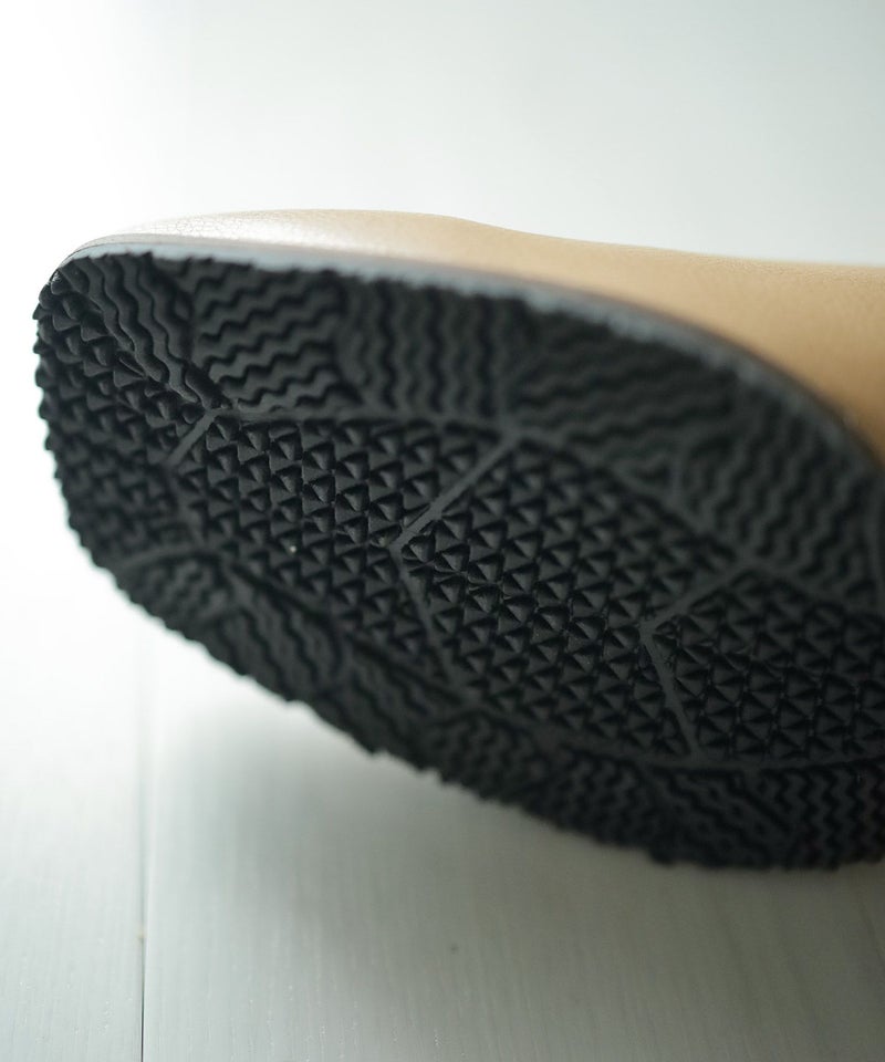 シボ感と艶をもち合わせた上質なレザー調素材は、程よく足になじみ柔らかな履き心地。