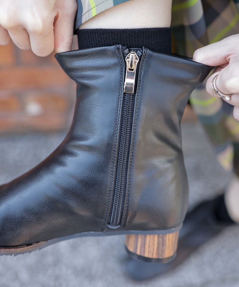 約3cmのローヒールで、デイリーユースにぴったりな大人ショートブーツ。