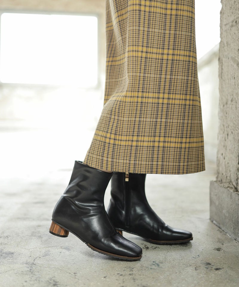 ブーツの真ん中をすらりと伸びるセンターシームが縦ラインを強調し、脚を長くキレイに見せてくれます。