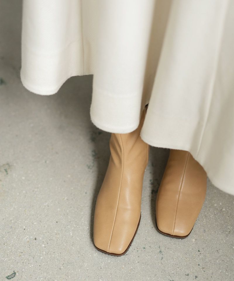 今っぽさを纏えるほっそりスクエアトゥと細身の美しいフォルム。
