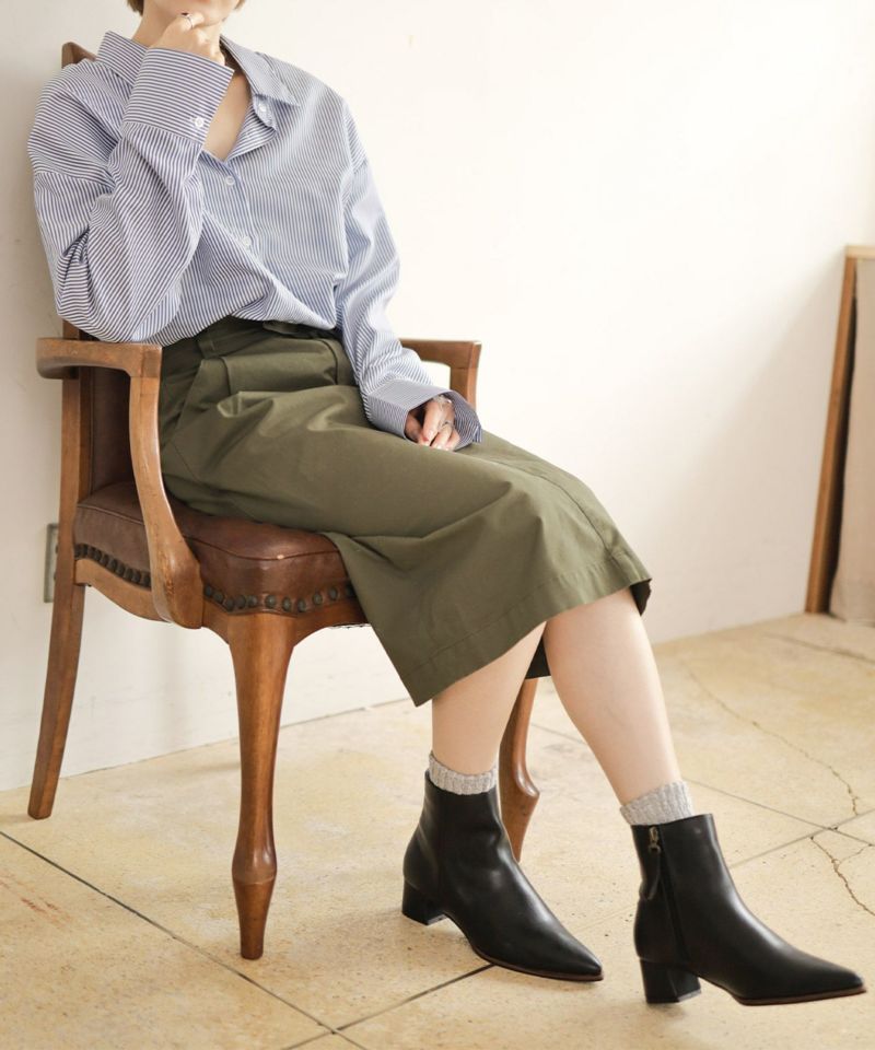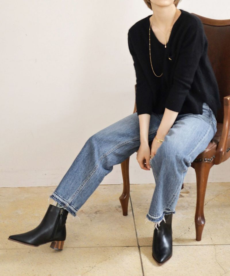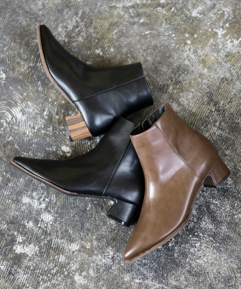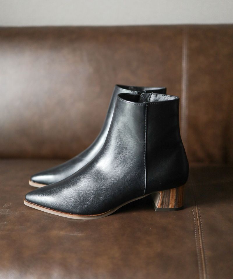 今シーズン注目のポインテッドトゥに、スマートなフォルムで上品に仕上げたショートブーツ。