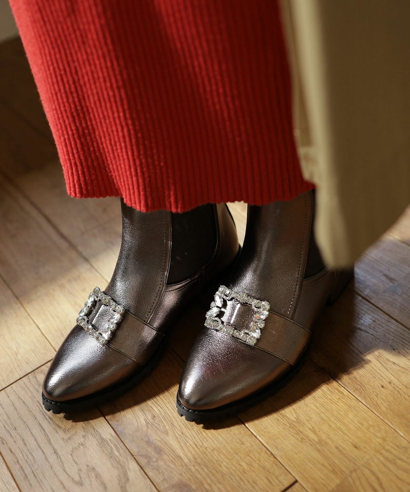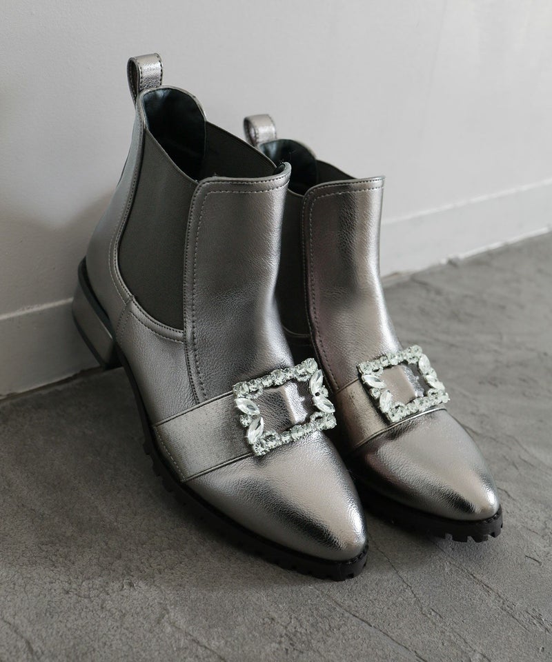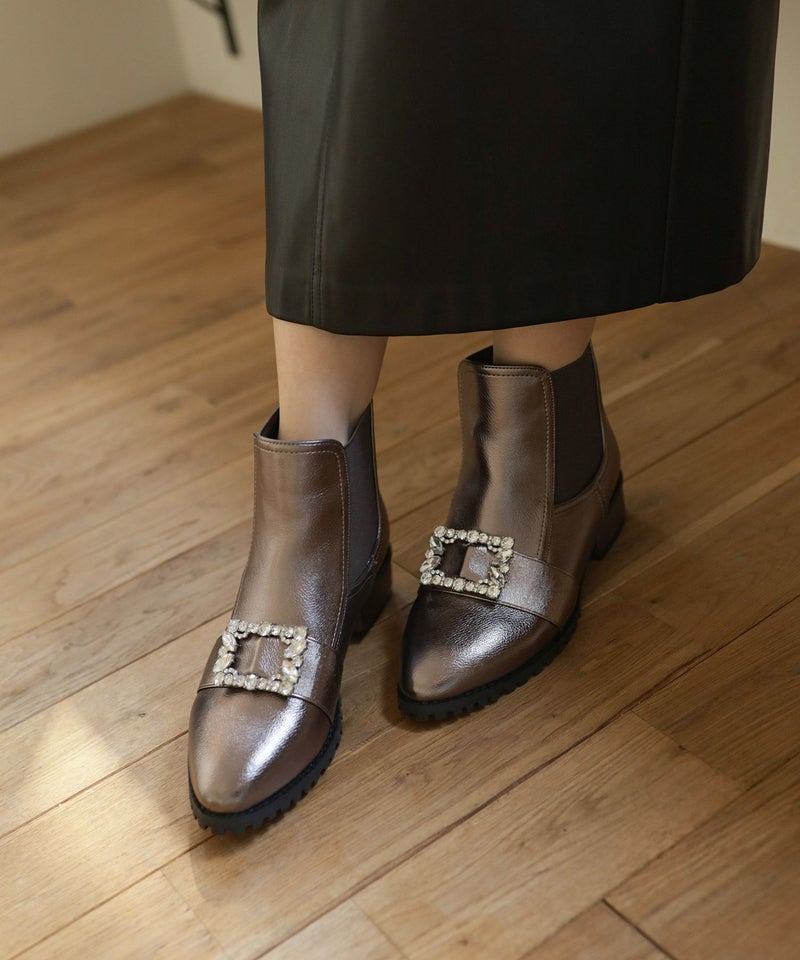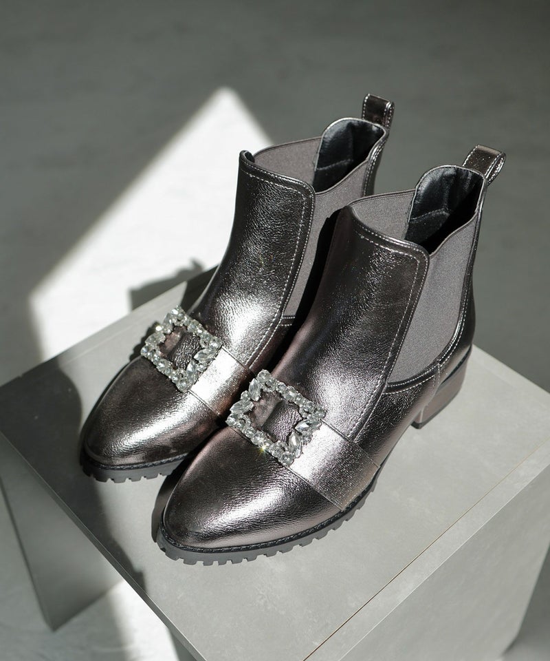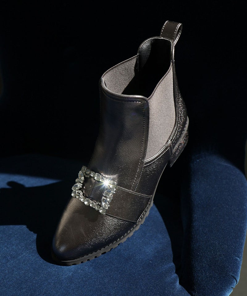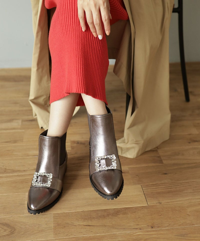 4. ビジュー付きサイドゴアショートブーツ▲返品交換不可