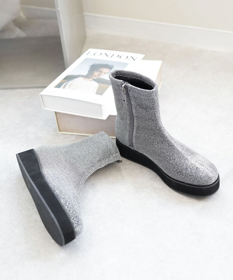 4. 軽量厚底ソール ストレッチニットブーツ▲返品不可