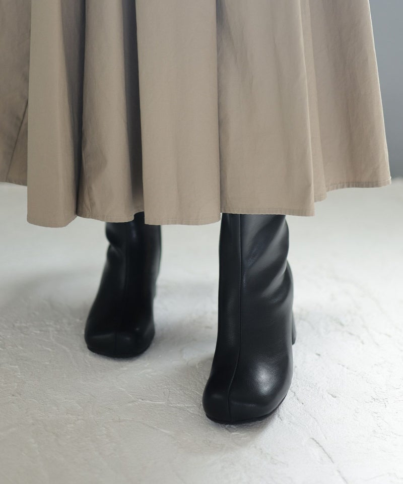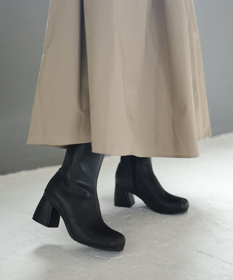 裾に向けて広がる約6.5cmの太ヒールは、スタイルアップと安定した履き心地を同時に叶えます。