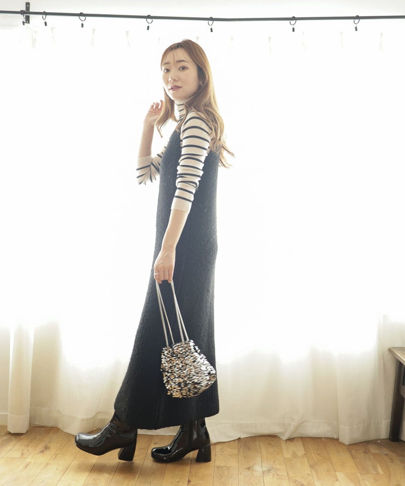 モードな印象もありながら、スッキリとしたシルエットで女性らしさも忘れません。