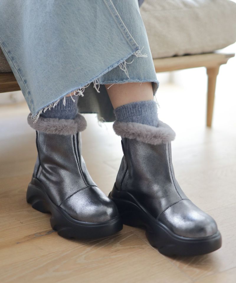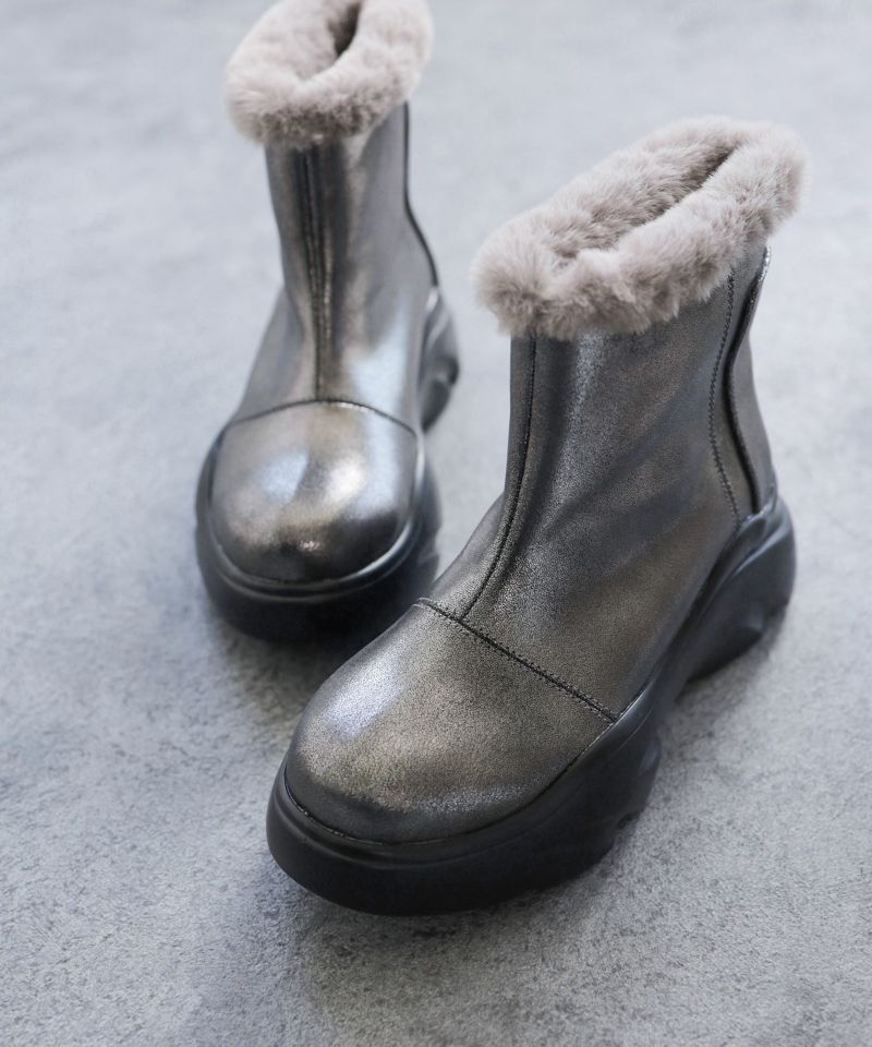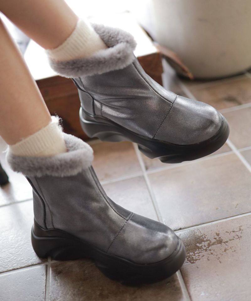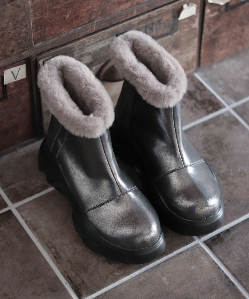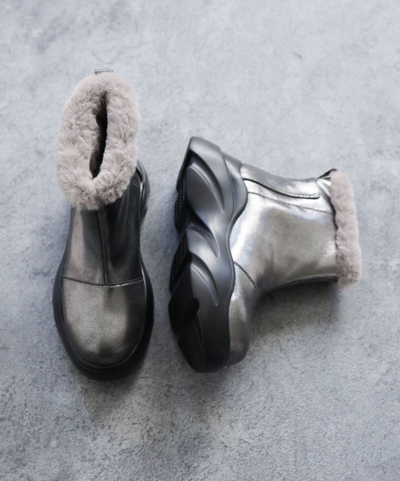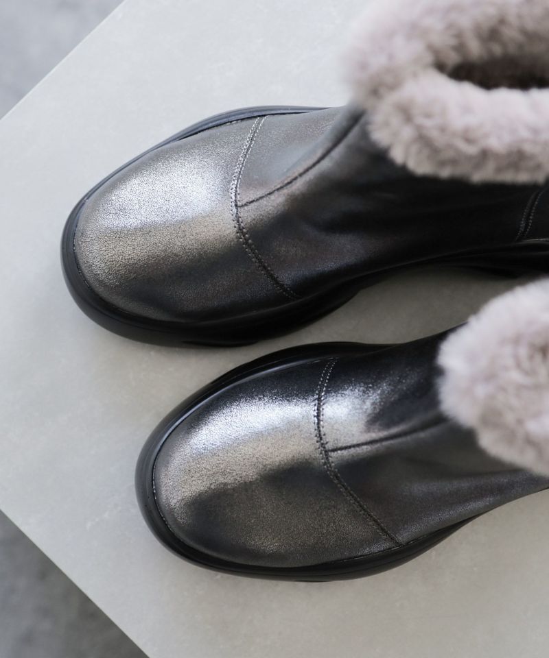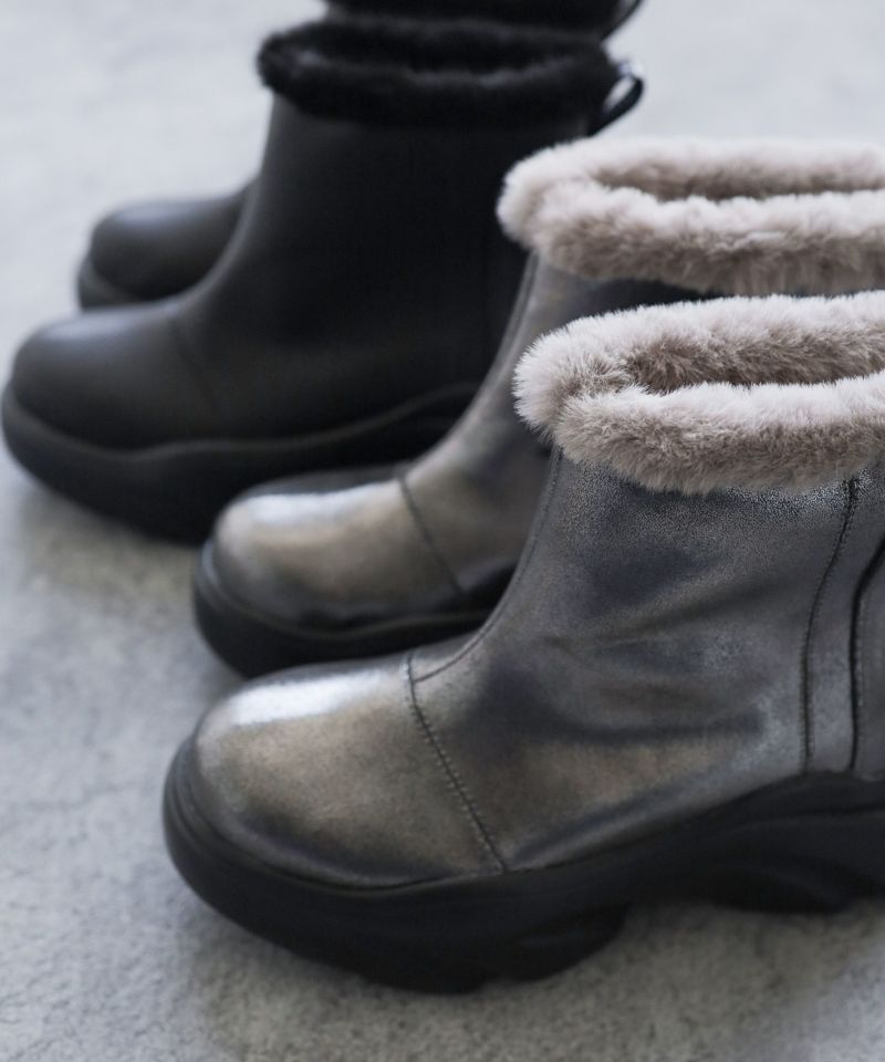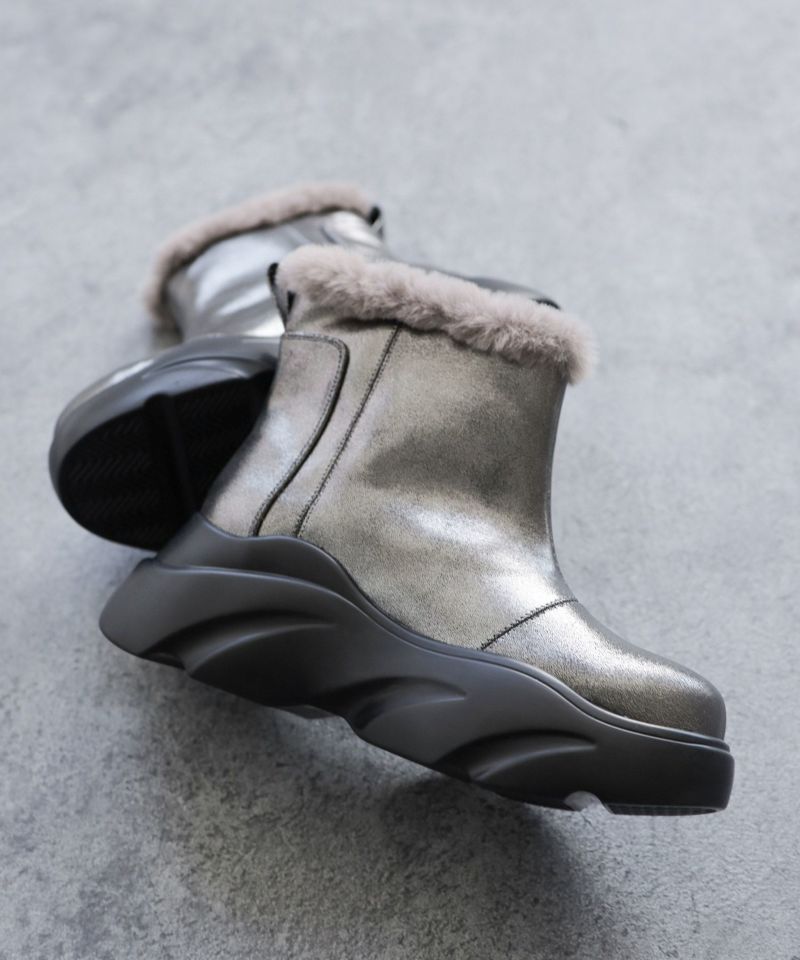シルバーはアッパーのメタリックな艶感とファーのくすみブラウンがブラックより抜け感を与えてくれるカラー。