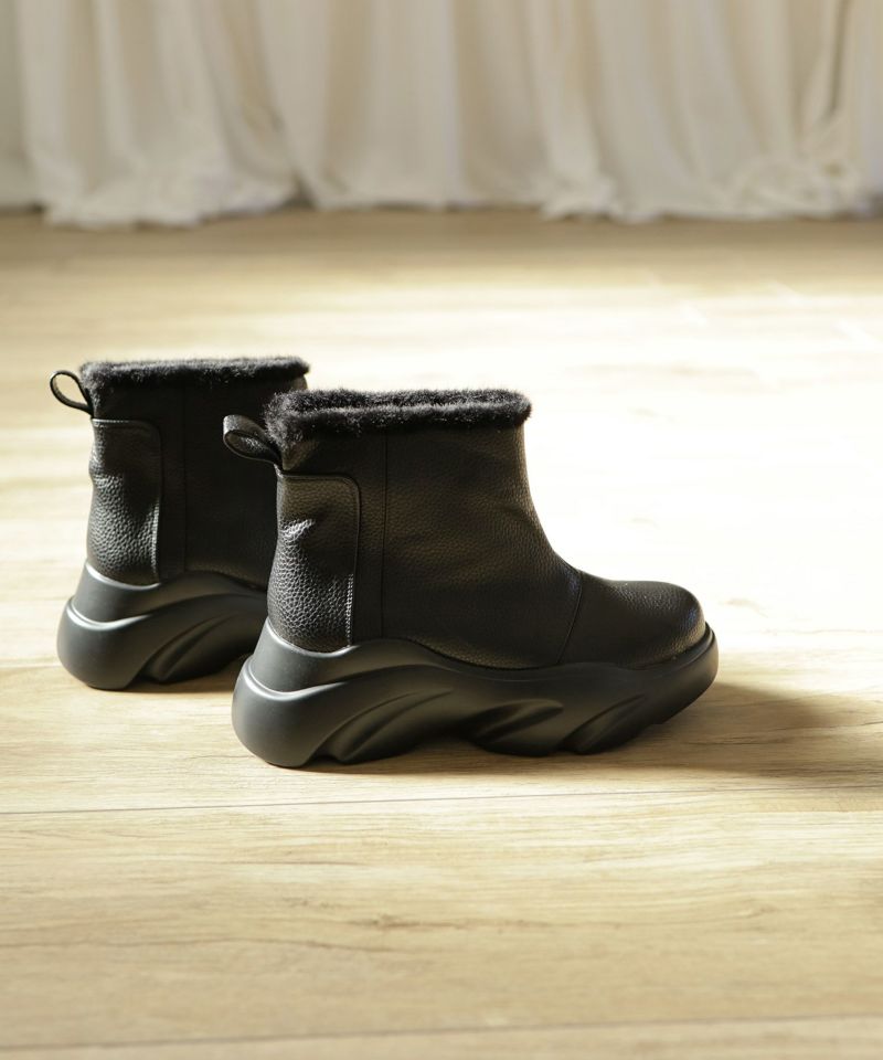 商品説明今季注目度の高いスニーカーブーツにふわふわのエコファーを敷き詰めた一足。