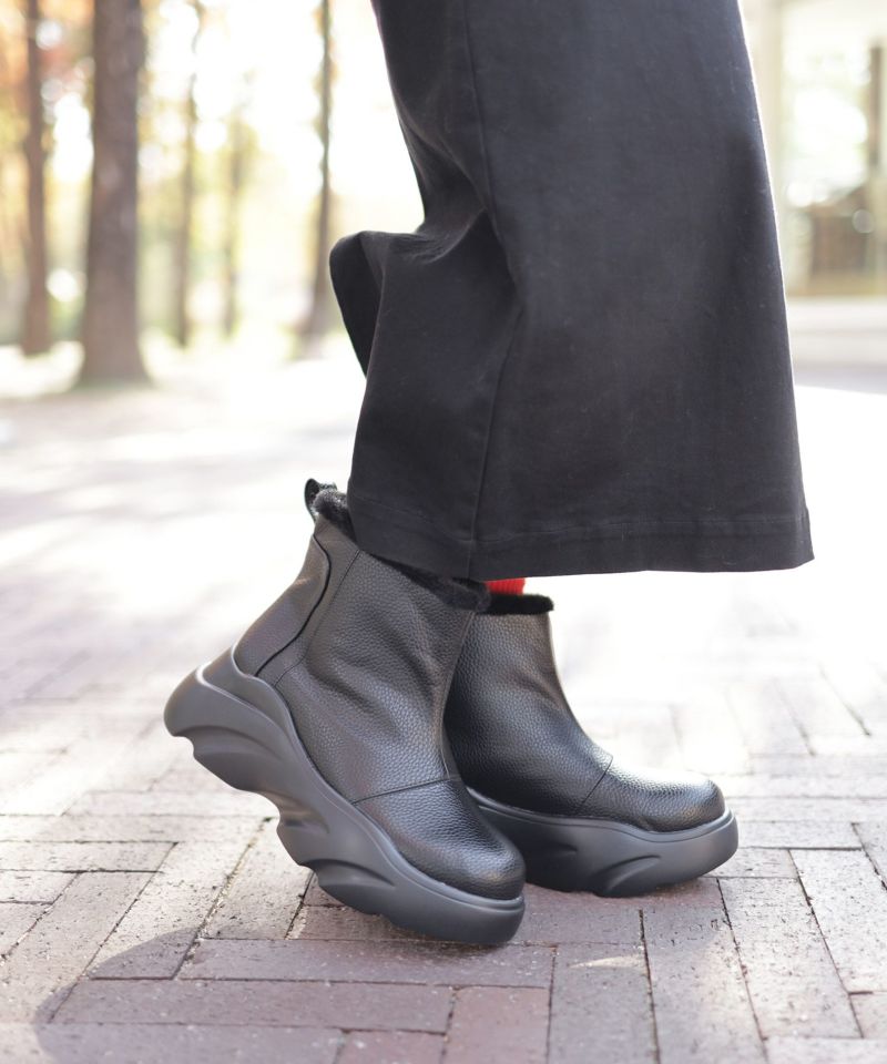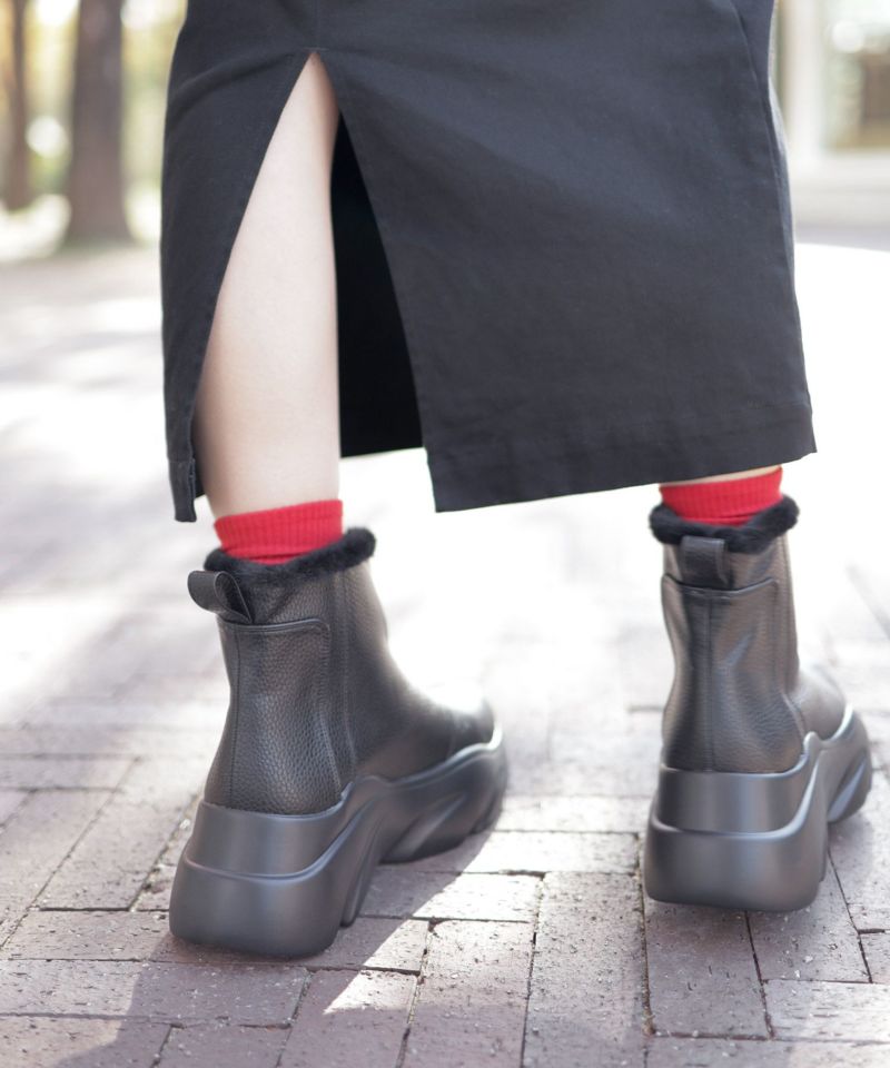 スニーカーとムートンブーツの要素をミックスして、幅広いスタイルに合わせやすいデザインに昇華しました。