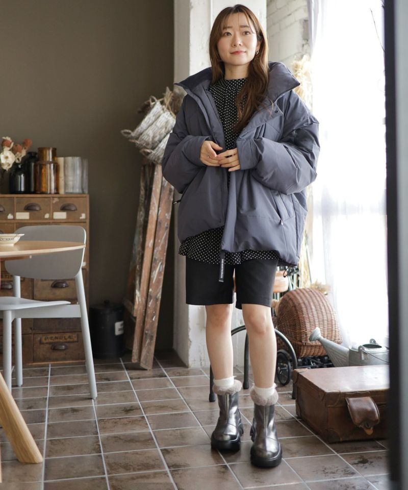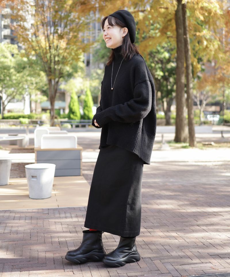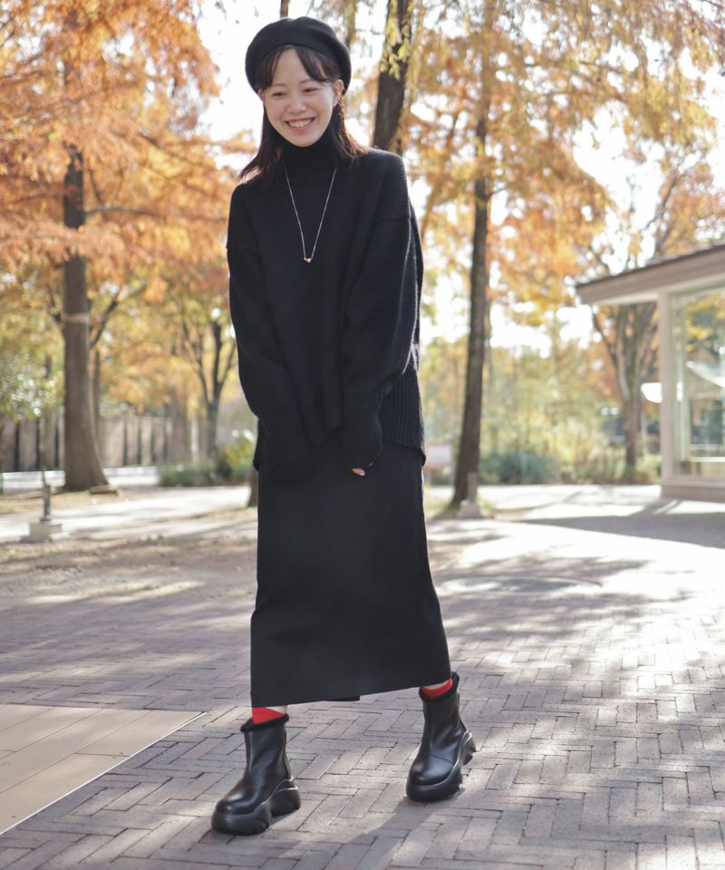 ブラックのタイツやパンツと繋ぐように合わせたり、ちらっとソックスを覗かせても◎