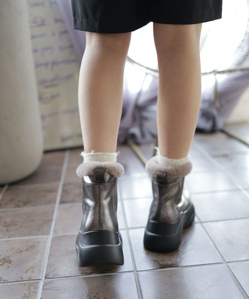 4. インナーファーの厚底ムートンスニーカーブーツ▲返品不可