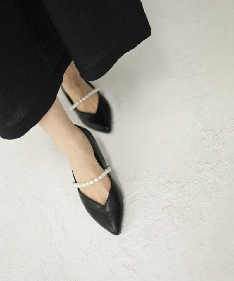 4. パールストラップのポインテッドトゥローヒールメリージェーンパンプス▲返品不可