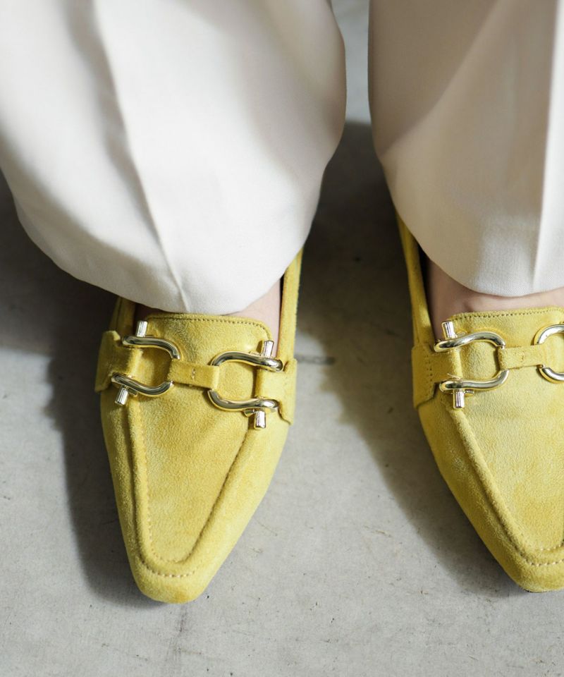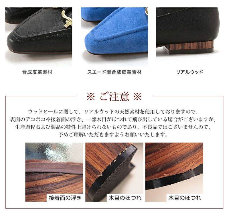 ウッドヒールシャープトゥビットローファー▲返品交換不可