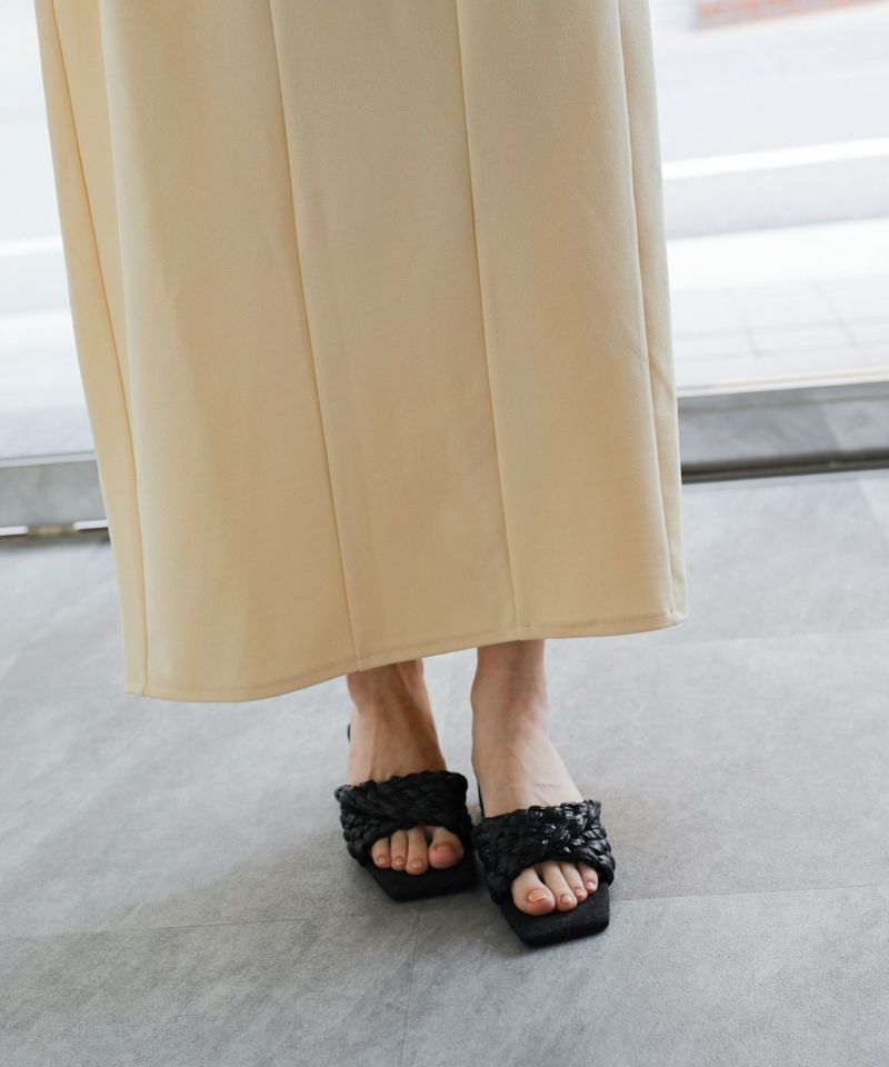 商品説明麦わら風素材をぎゅっと編み込んで、足元に夏らしさを添えたミュールサンダル。